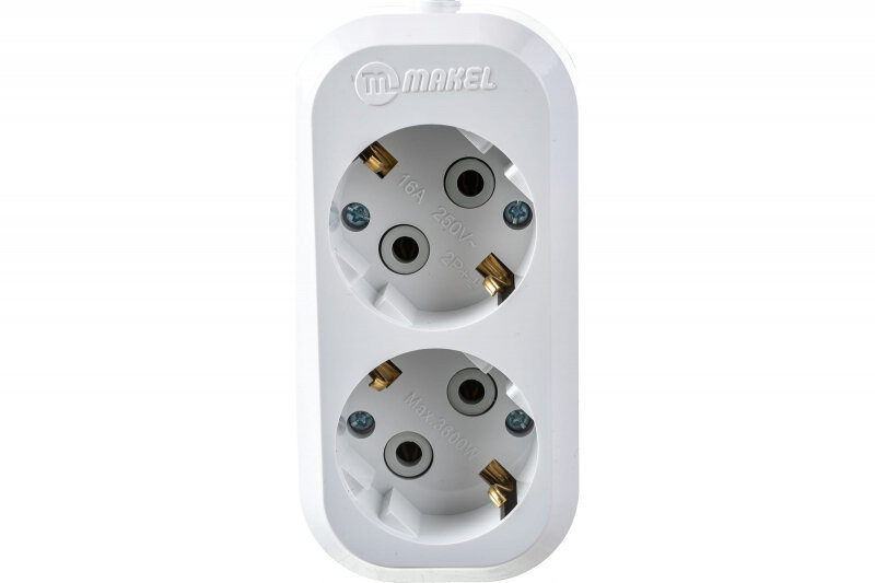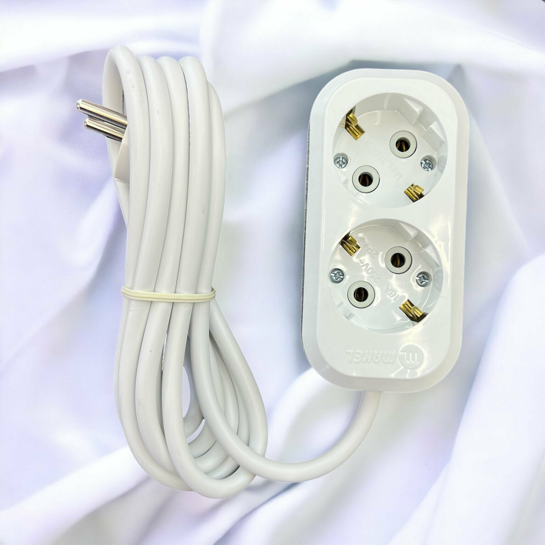 Удлинитель Makel длина 2 м метра розетки 2 гнезда с заземлением c/з Макел 3х1 ПВС электрический сетевой бытовой 3600 вт 220в белый, арт. MGP112