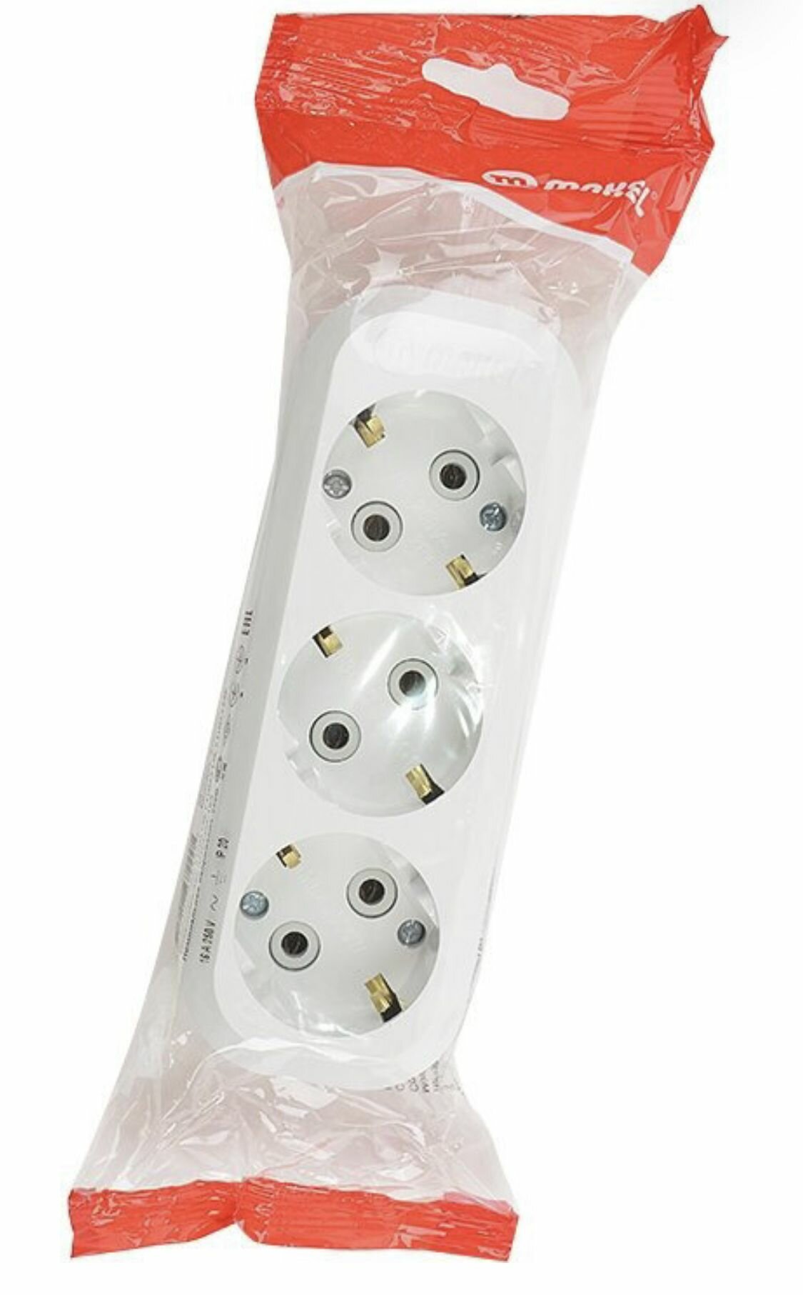 Колодка электрическая 3 розетки Makel 16 А 250 В 2,2 кВт белая (MGP131)