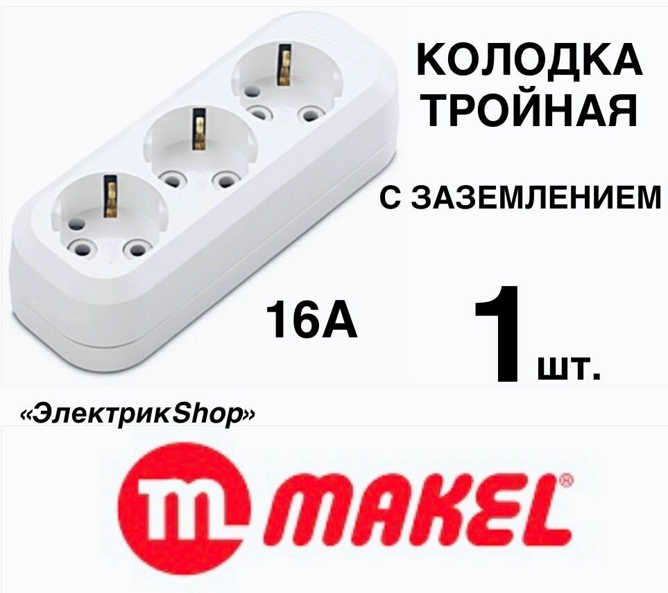 Колодка MAKEL MGP131 16А белый тройная с заземление