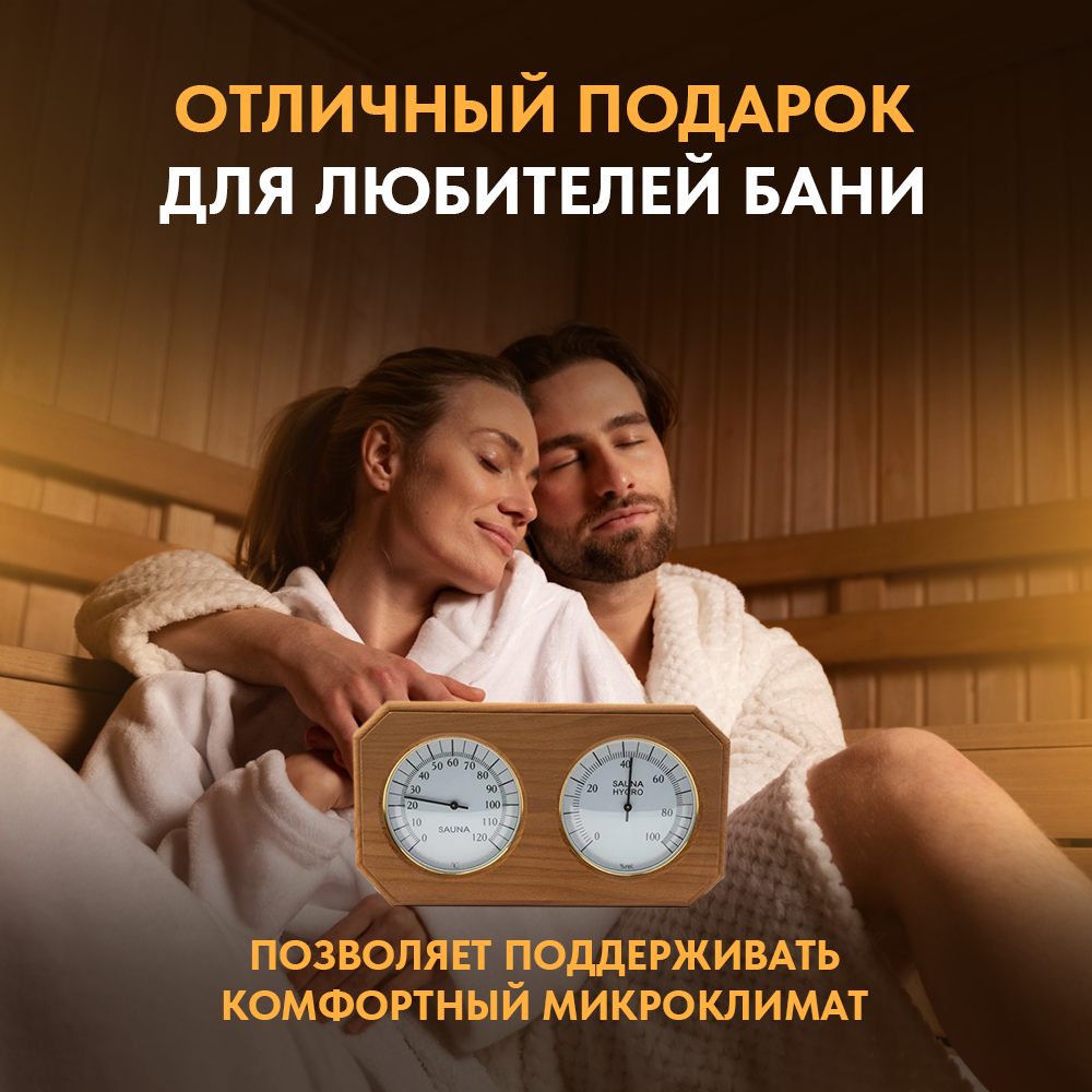| Комплектация | Термометр для бани, гигрометр для бани |