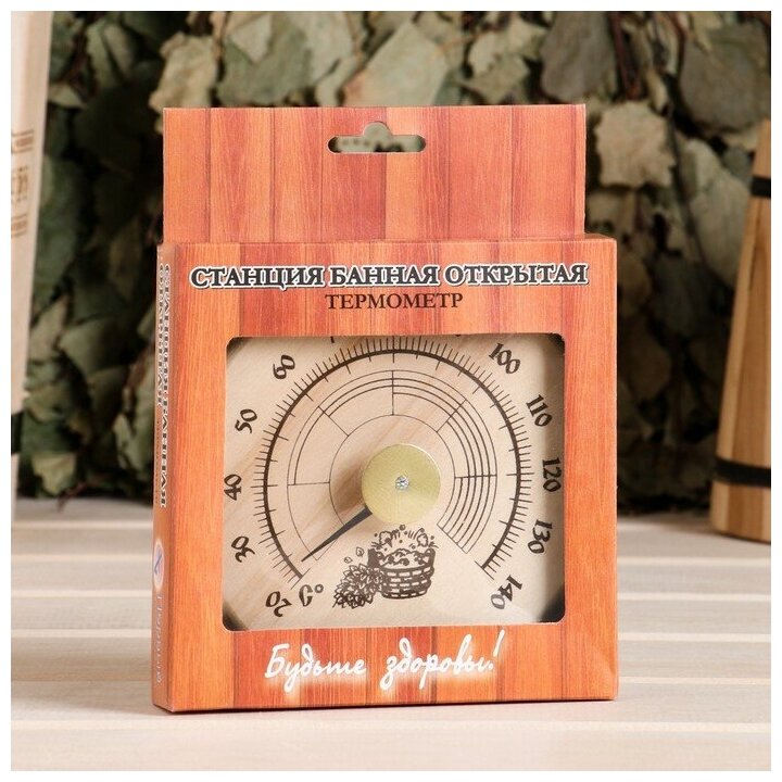 Термометр деревянный «Станция банная» открытая бытовая, от 0 до +140 С , 2545544 интересное: