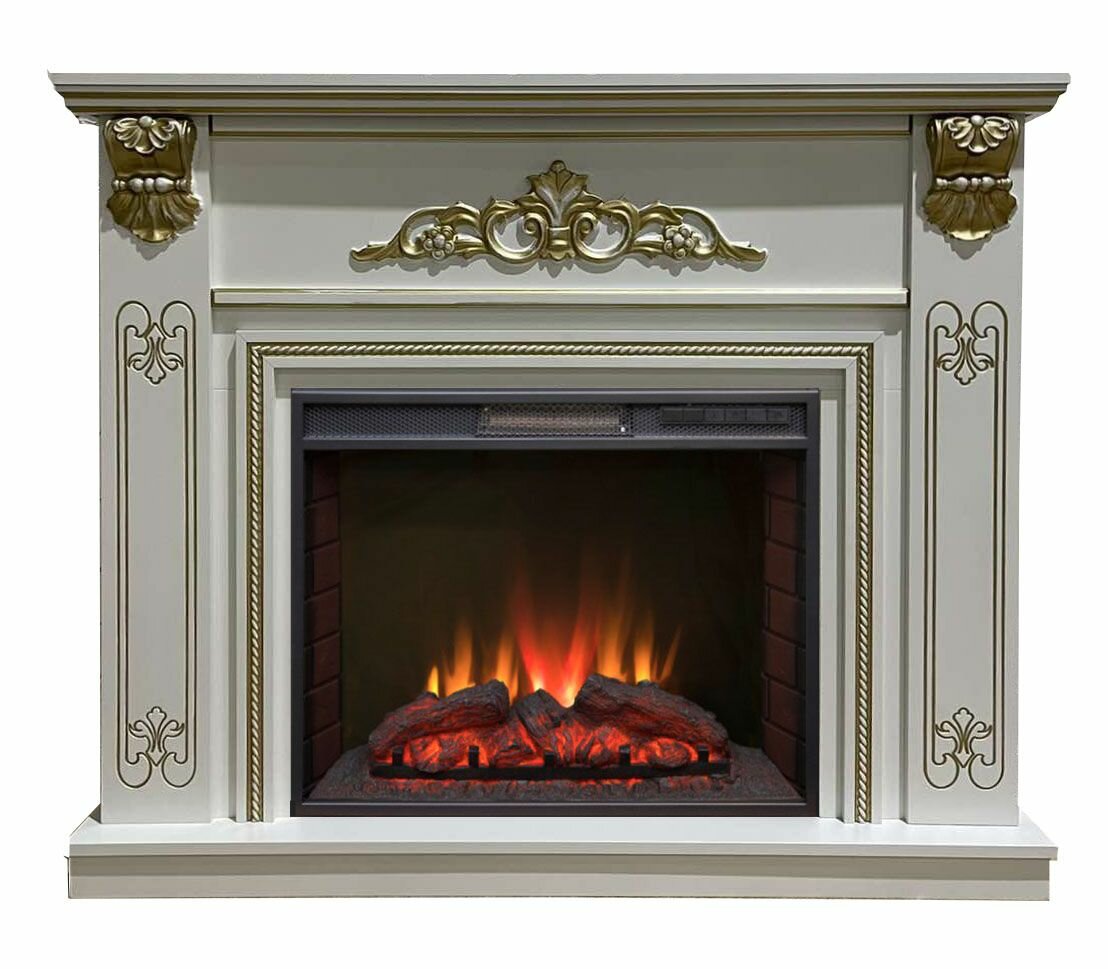 Электрокамин FlameKamin Византия WTG (c патиной золото) с очагом Sparta 25,5 LED (камин электрический)
