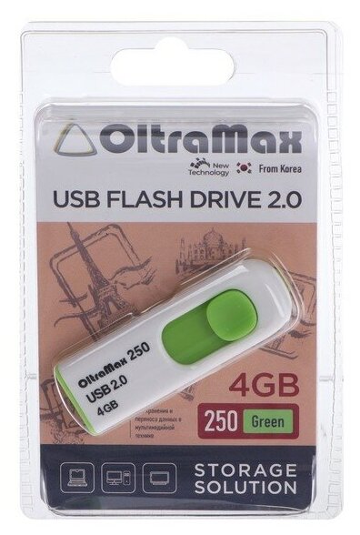 Купить Флешка OltraMax 250 4 Гб USB2.0 чт до 15 Мб/с зап до 8 Мб/с зелёная