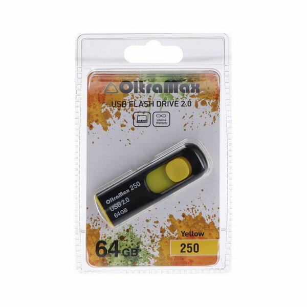 Купить Флешка OltraMax 250, 64 Гб, USB2.0, чт до 15 Мб/с, зап до 8 Мб/с, жёлтая