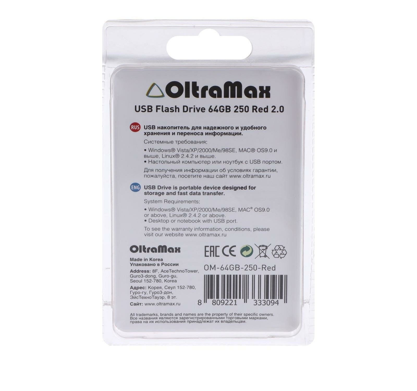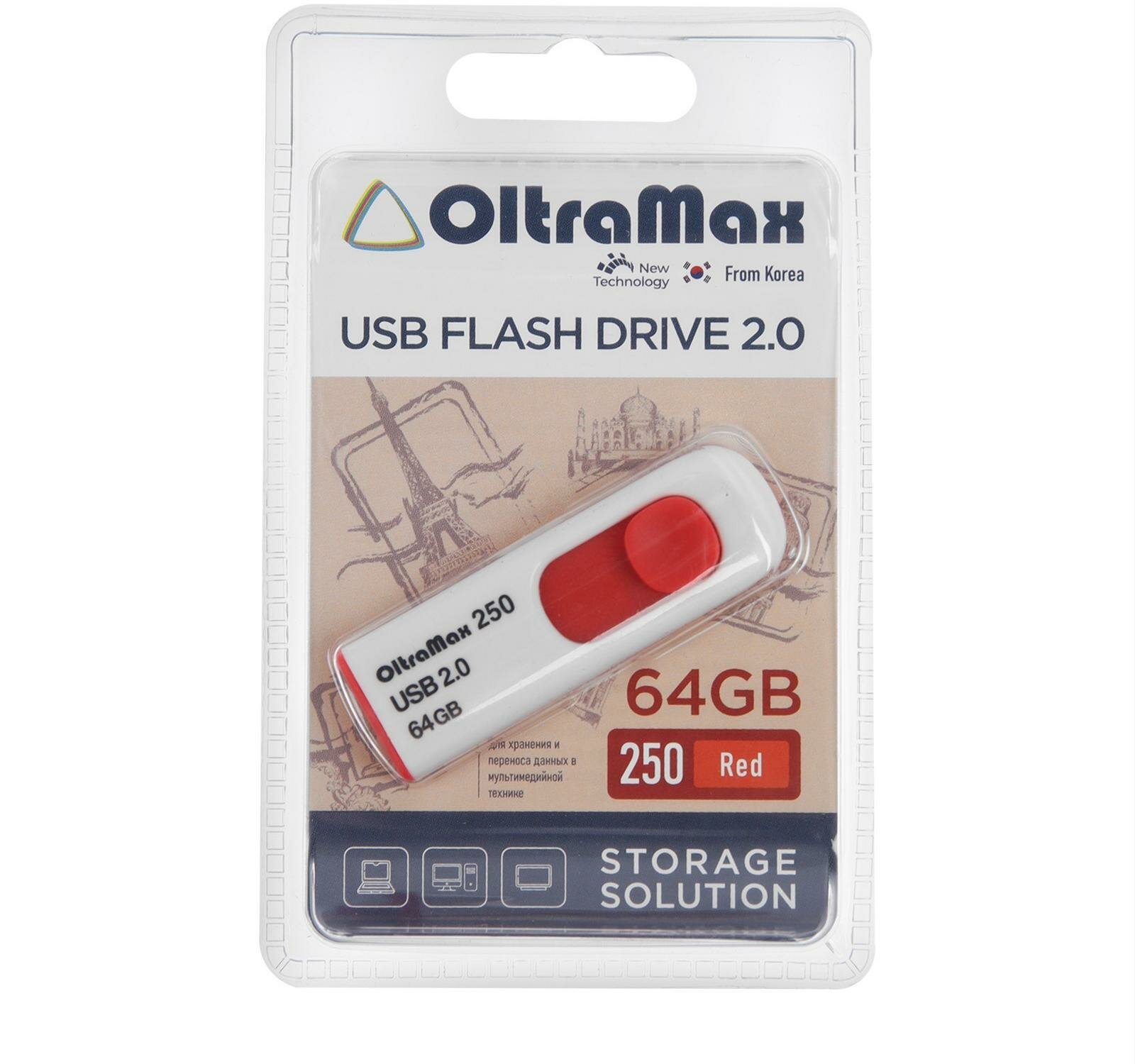 Флешка 64Gb OltraMax USB 250 красный (OM-64GB-250-Red)