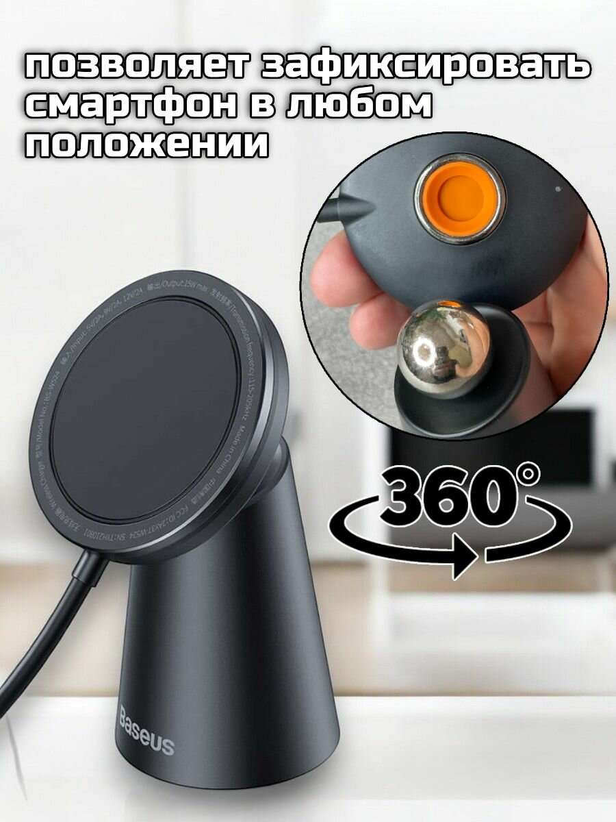 Baseus Simple Magnetic Stand Wireless, 15W, черный, CCJJ000001