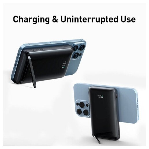 Внешний аккумулятор с беспроводной зарядкой Baseus Magnetic Bracket Wireless Fast Charge Power Bank 10000mAh 20W (black and dark blue) интересное: