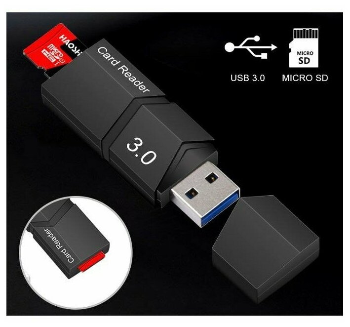 Кард ридер USB 3.0 - Micro SD Card reader-черный интересное: