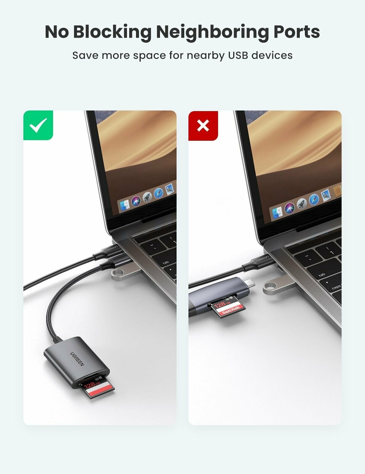 Кардридер UGREEN CM401 (80887) USB-A to SD/TF Memory Card Reader Alu Case. Цвет: серый интересное: