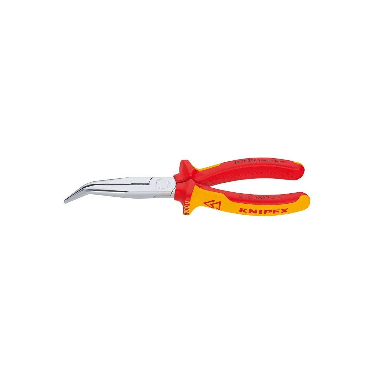 Плоские круглогубцы 200 мм с режущими кромками VDE KNIPEX, KN-2626200, загнутые