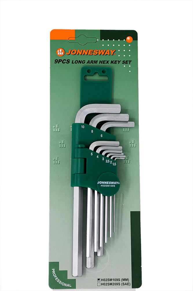 JONNESWAY H02SM109S Комплект угловых шестиграников LONG 1,5-10мм, 9 предметов S2 материал JonnesWay