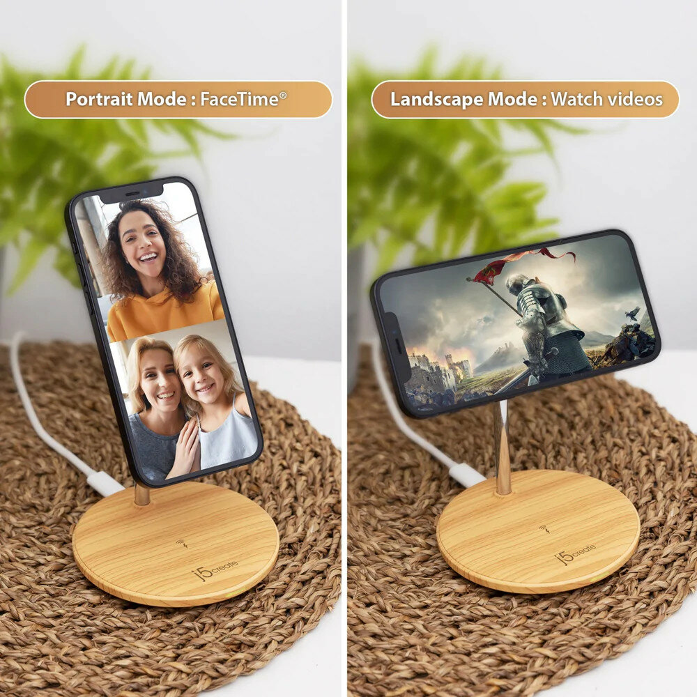 Беспроводное зарядное устройство j5create Wood Grain 2-in-1 Magnetic Wireless Charging Stand дерево (JUPW2106) интересное: