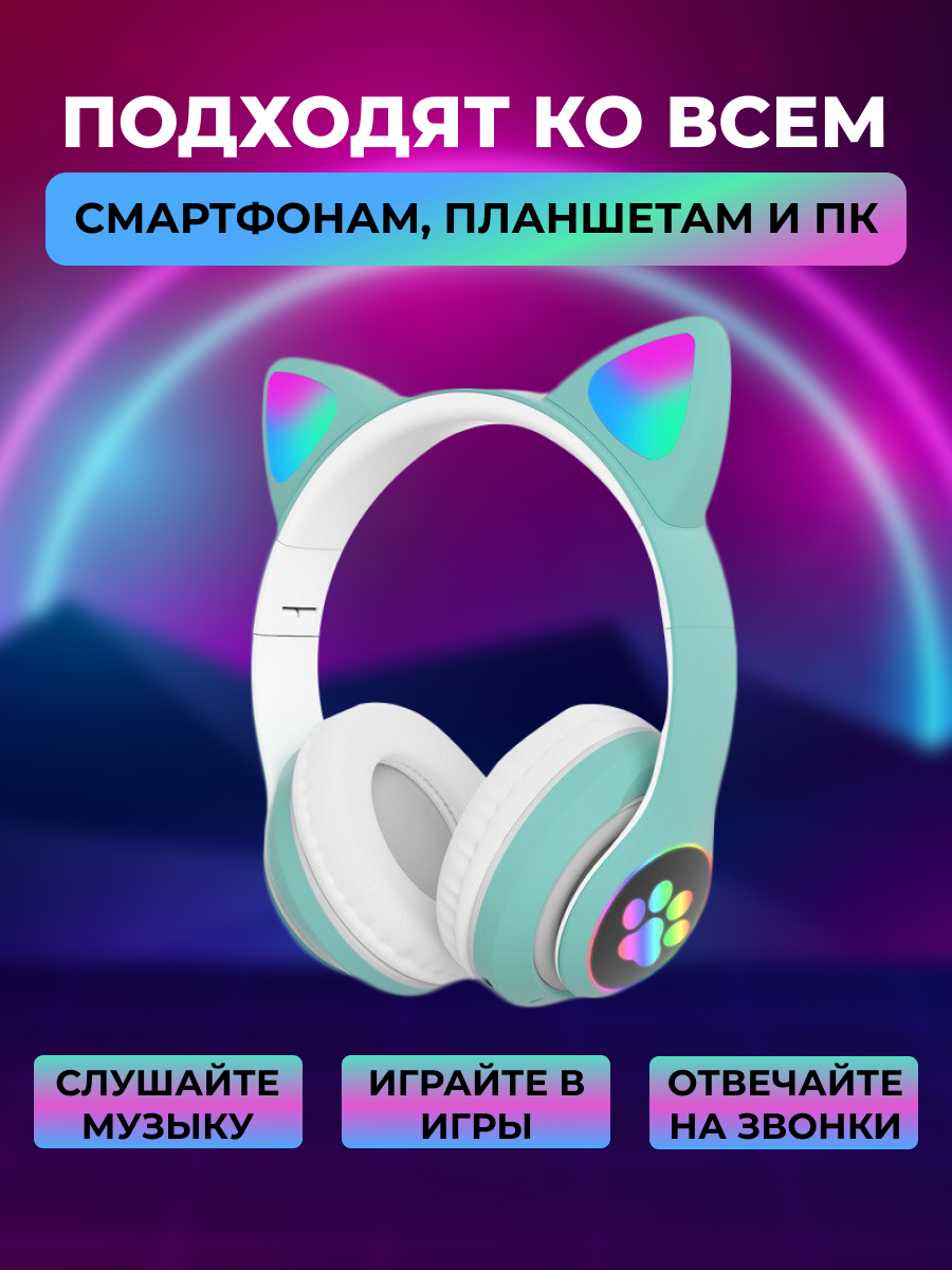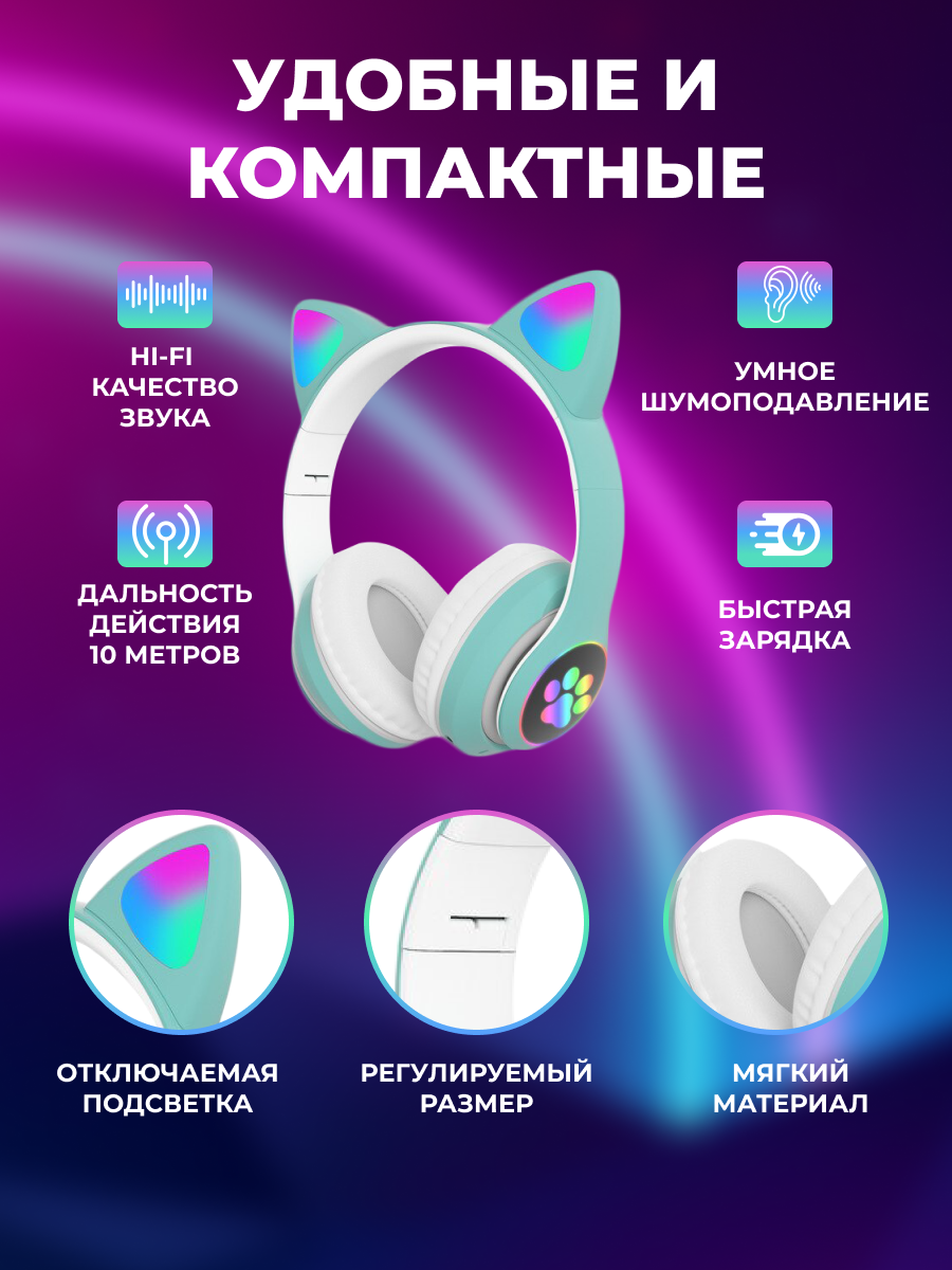 СохранитьБеспроводные светящиеся наушники c кошачьими ушками cat EAR STN-28 мятные, детские интересное: