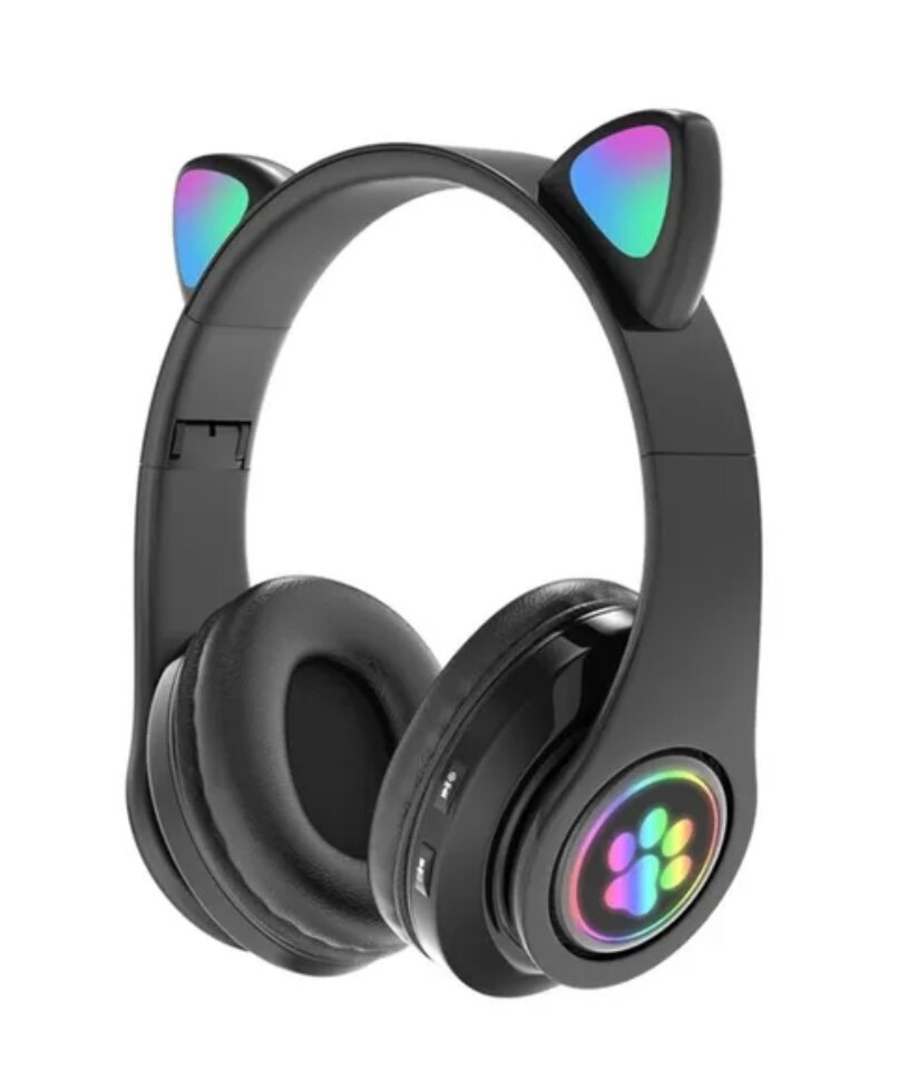 Наушники беспроводные с светящимися ушками, bluetooth /чёрный/