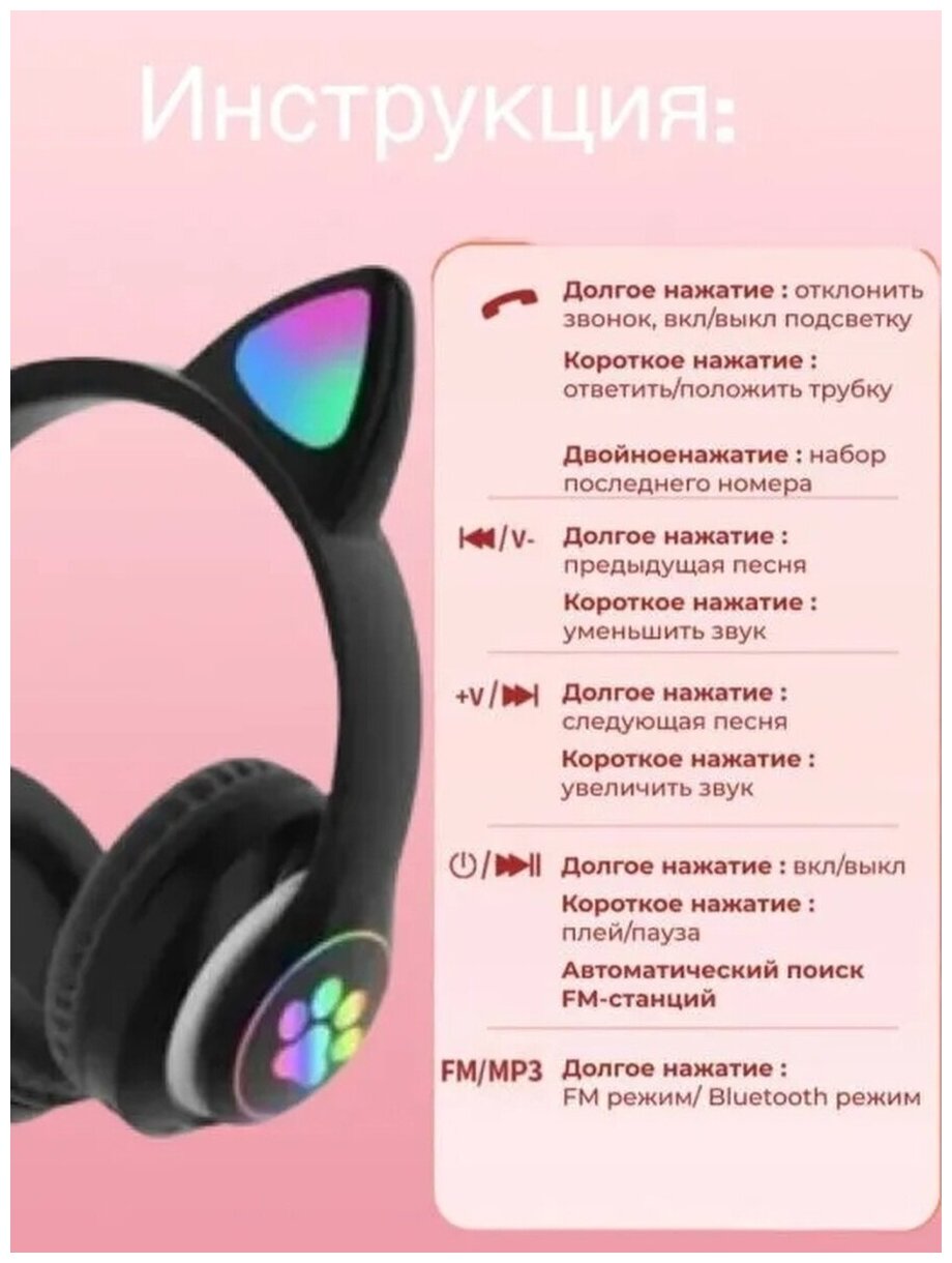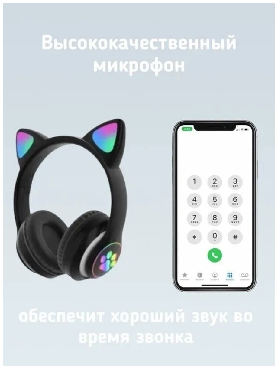 Беспроводные Bluetooth наушники со светящимися кошачьими ушами , чёрные интересное:
