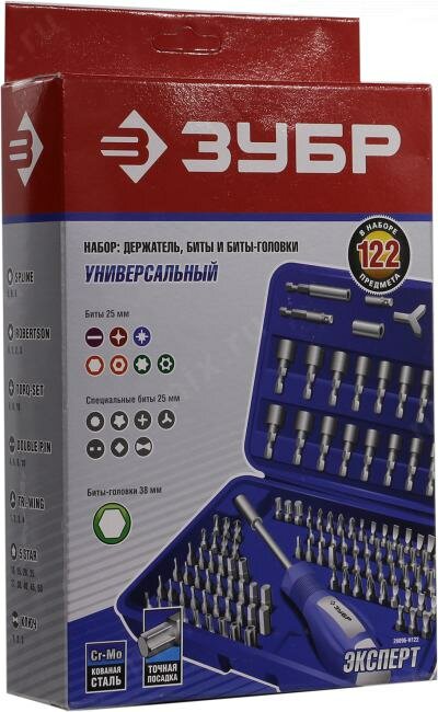 Набор специальных бит из Cr-V стали ЗУБР Эксперт 26096-H122