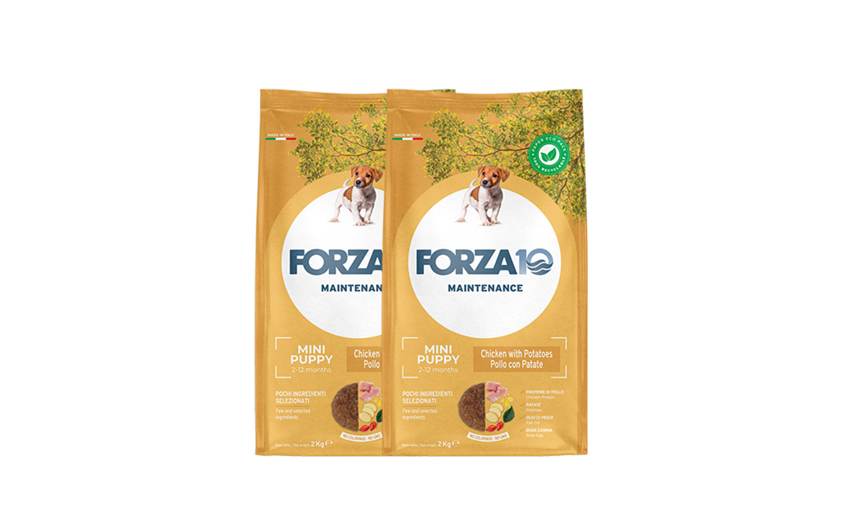 Купить FORZA10 DOG MAINTENANCE PUPPY JUNIOR SMALL/MEDIUM для щенков маленьких и средних пород с курицей и картофелем (2 + 2 кг)