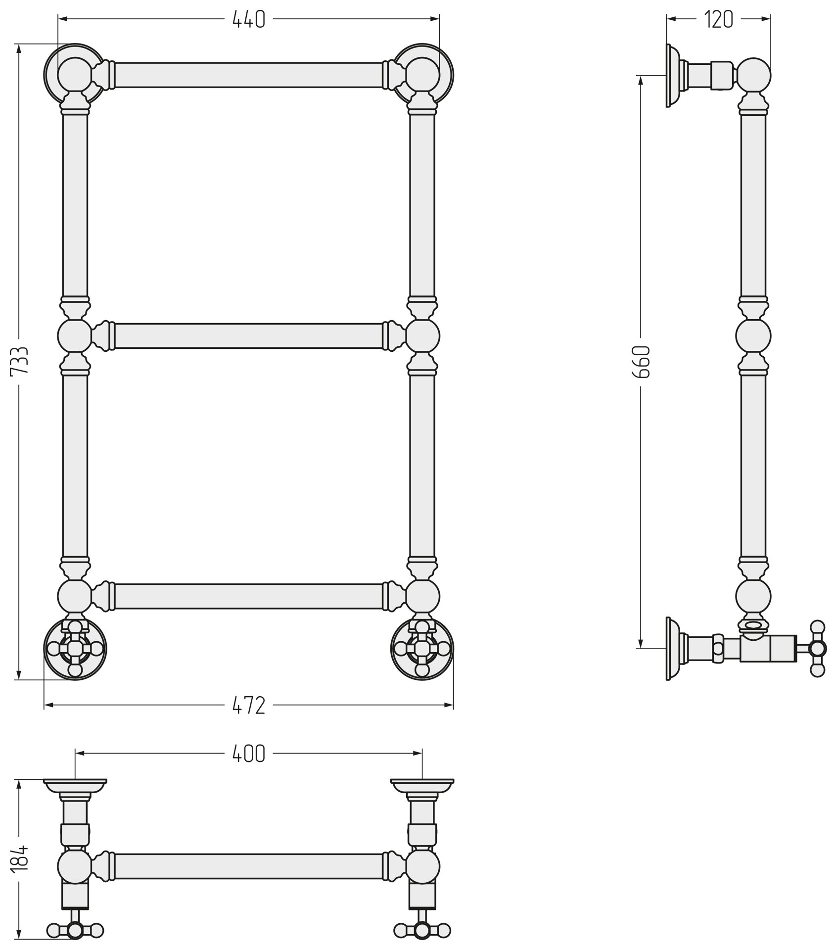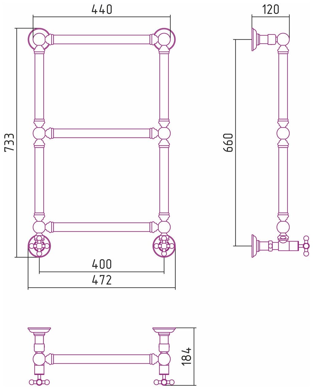 Полотенцесушитель водяной Сунержа, ДР “Ренессанс 1386“ 660х400 (Матовый черный)