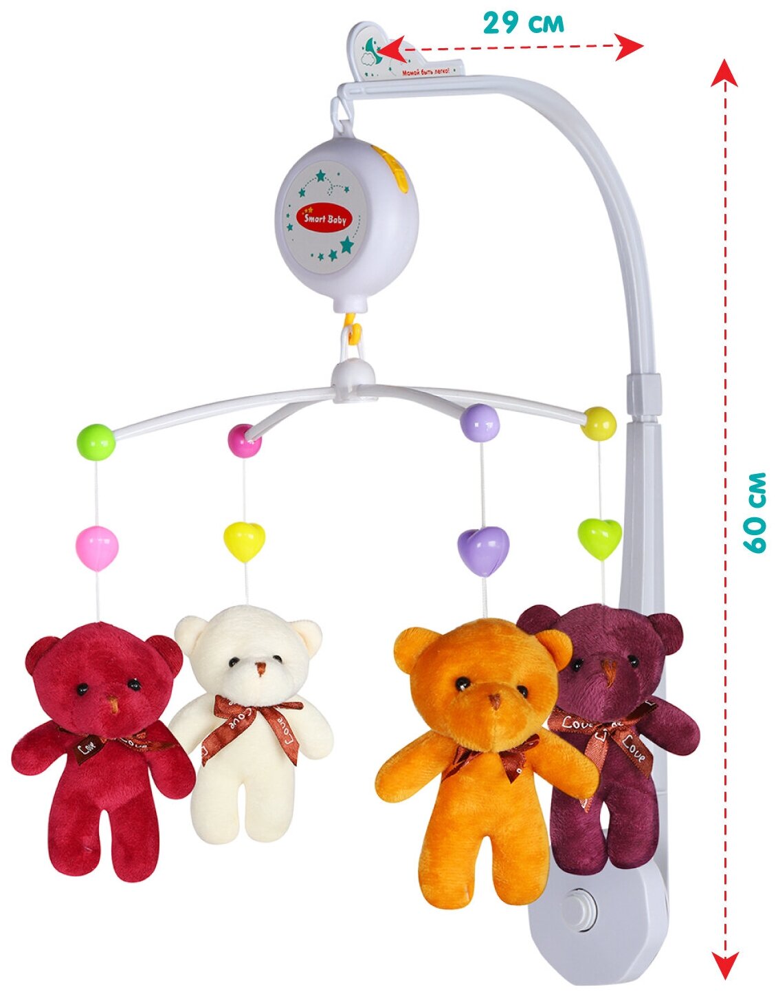 Купить Детская карусель, Мобиль TM Smart Baby, музыкальная, развивающая, колыбельные, 4 мягкие игрушки-подвески, 26 мелодий, JB0333672