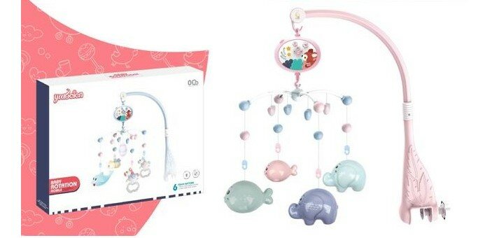 Shantou Gepai Мобиль для кроватки Baby Rotation Mobile, музыкальная, 4 подвесных игрушки, пластик, 41х7,5х30 см