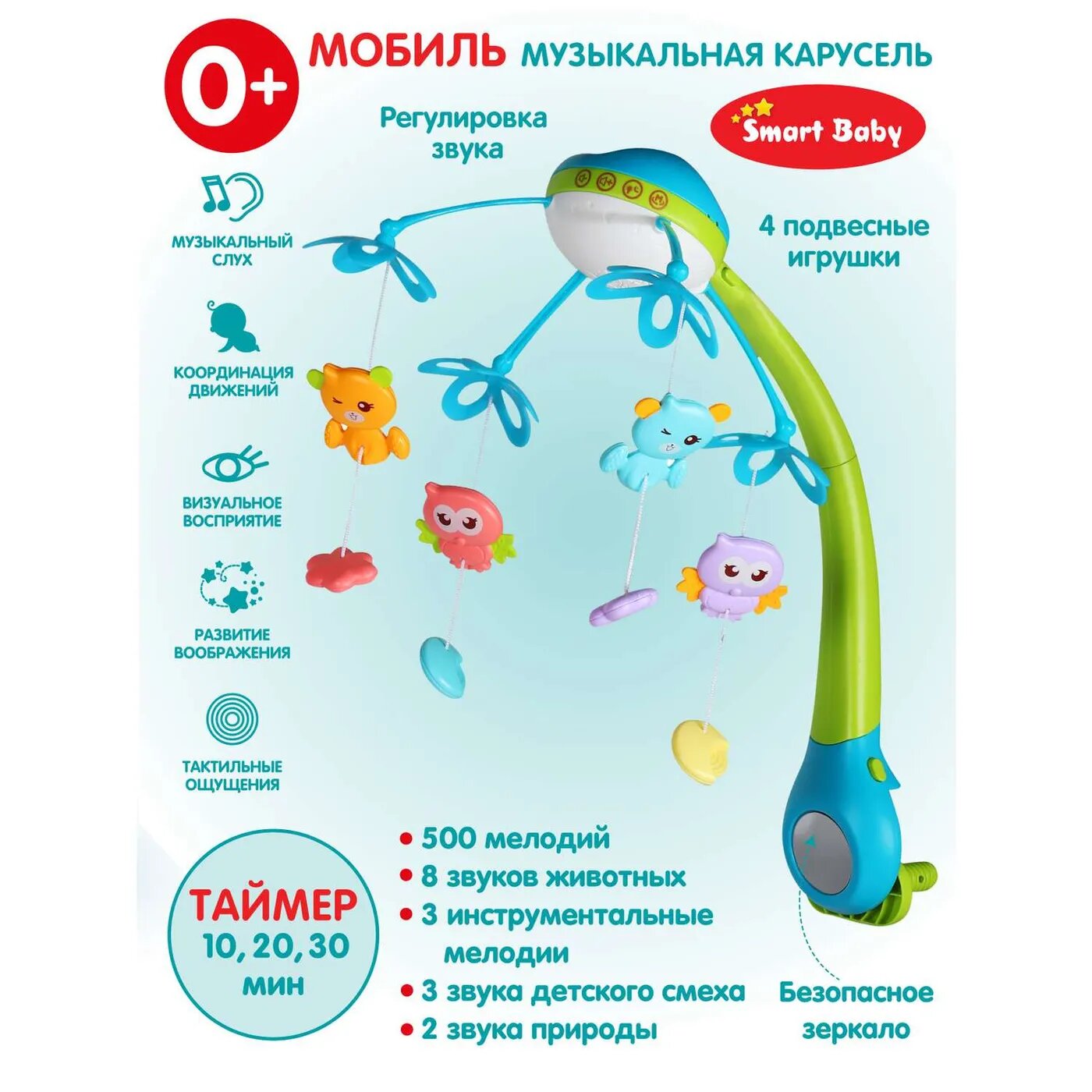Мобиль на кроватку Smart Baby на батарейках музыкальная 500 мелодий JB0333926