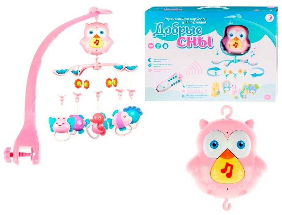 | Комплектация | инфракрасный приемник,инфракрасный передатчик, пульт управления, подвески-погремушки 3 шт, кронштейн, элементы карусели |