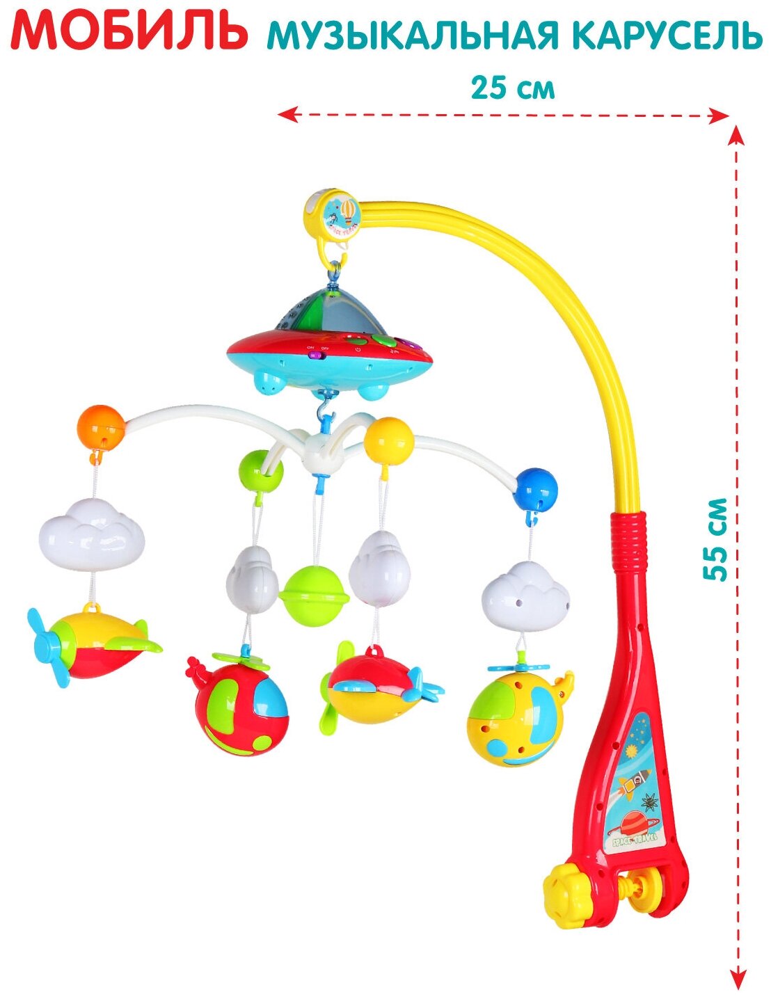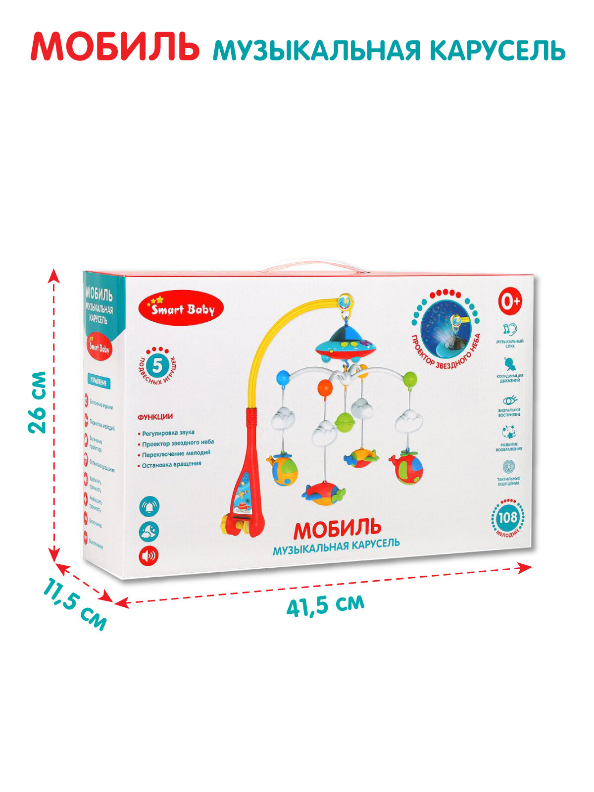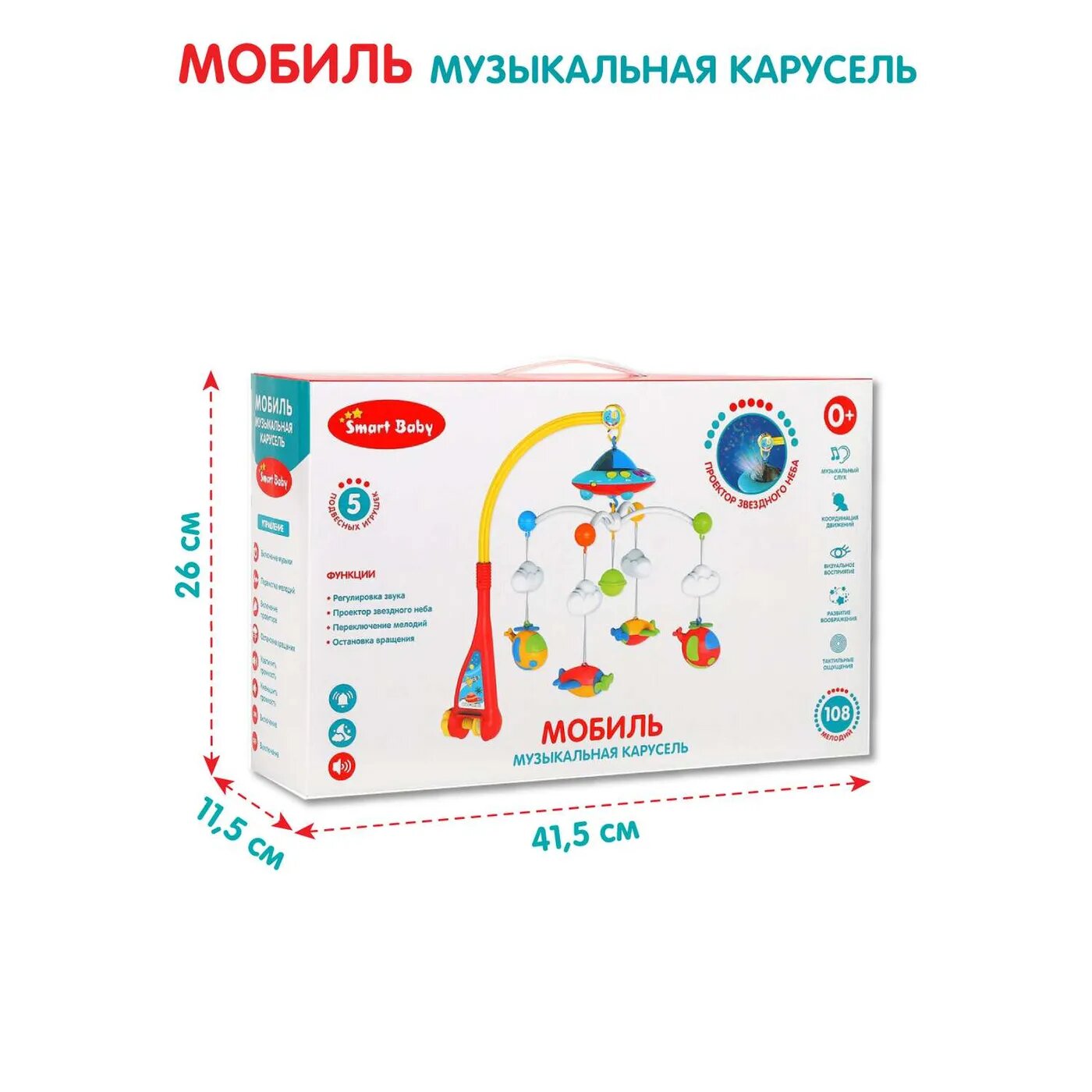 Музыкальная карусель, Мобиль "Летающая тарелка" ТМ "Smart Baby", проектор звездного неба, звук, свет, JB0333969 интересное: