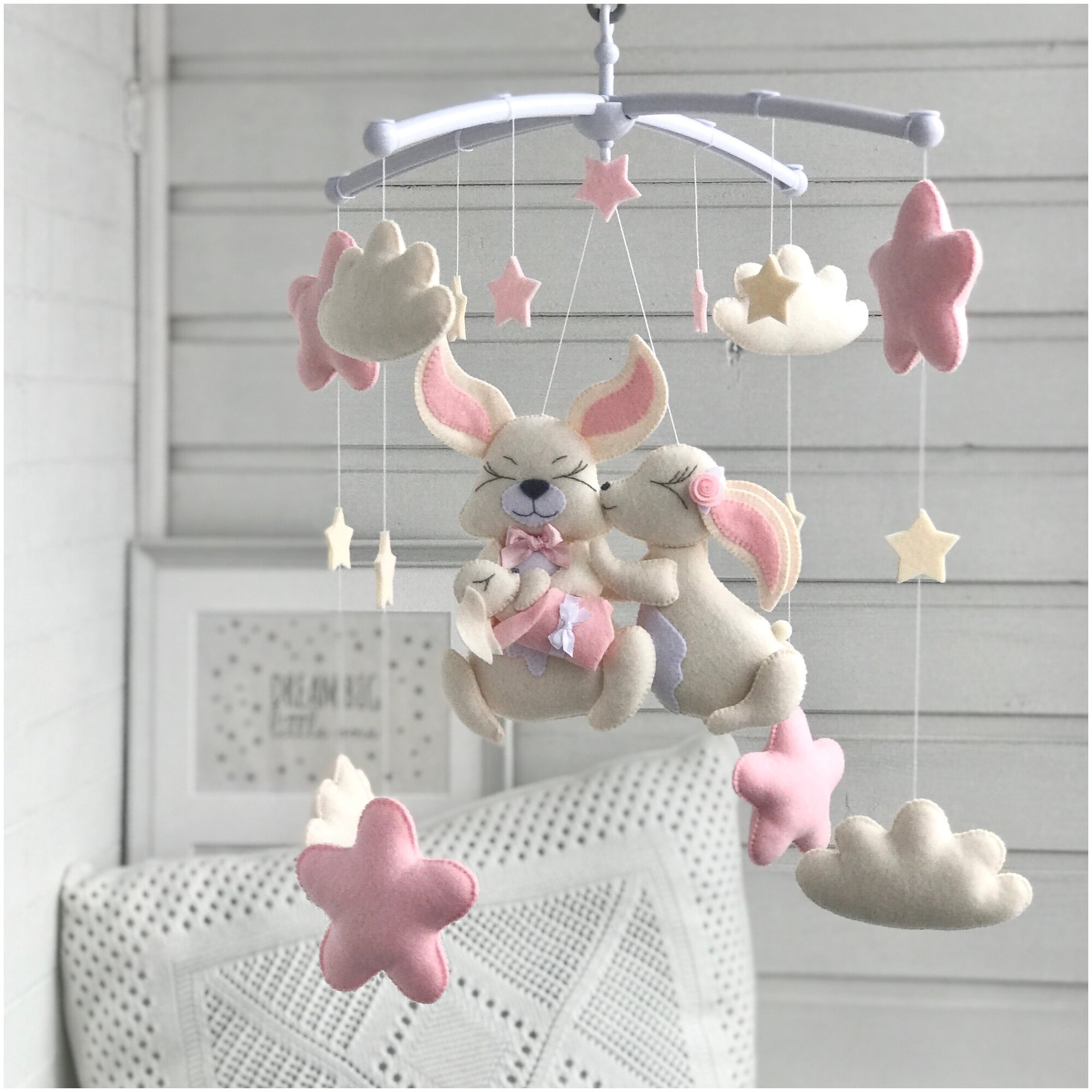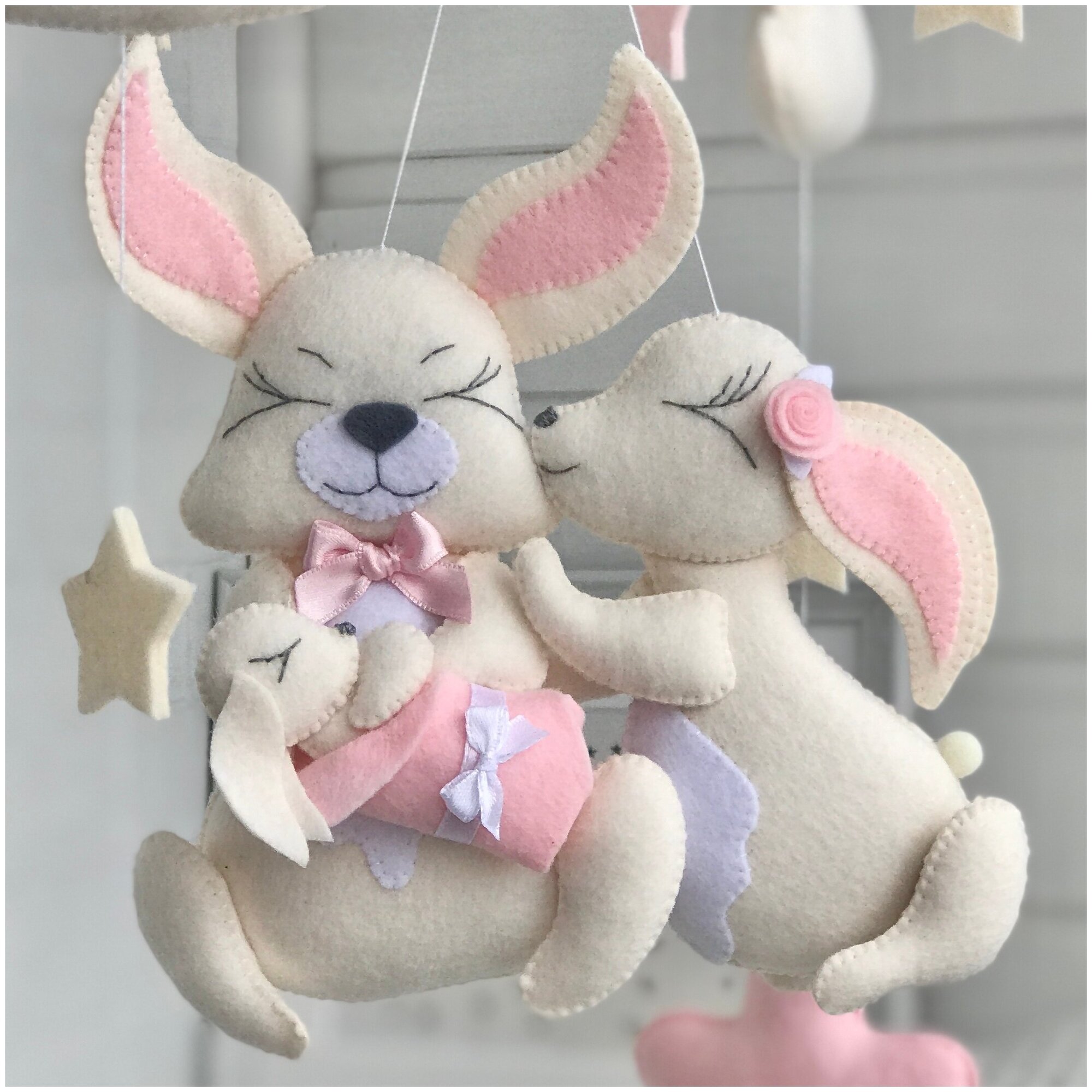 Мобиль на кроватку из фетра "Заюшки" AstiBaby Розовый интересное:
