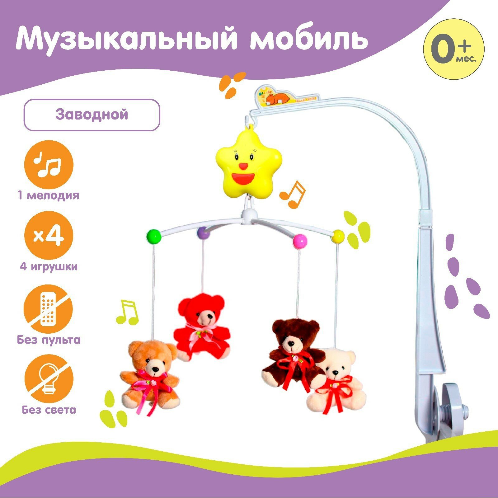 Купить Мобиль музыкальный «Мишки с бантом», заводной, с мягкими игрушками