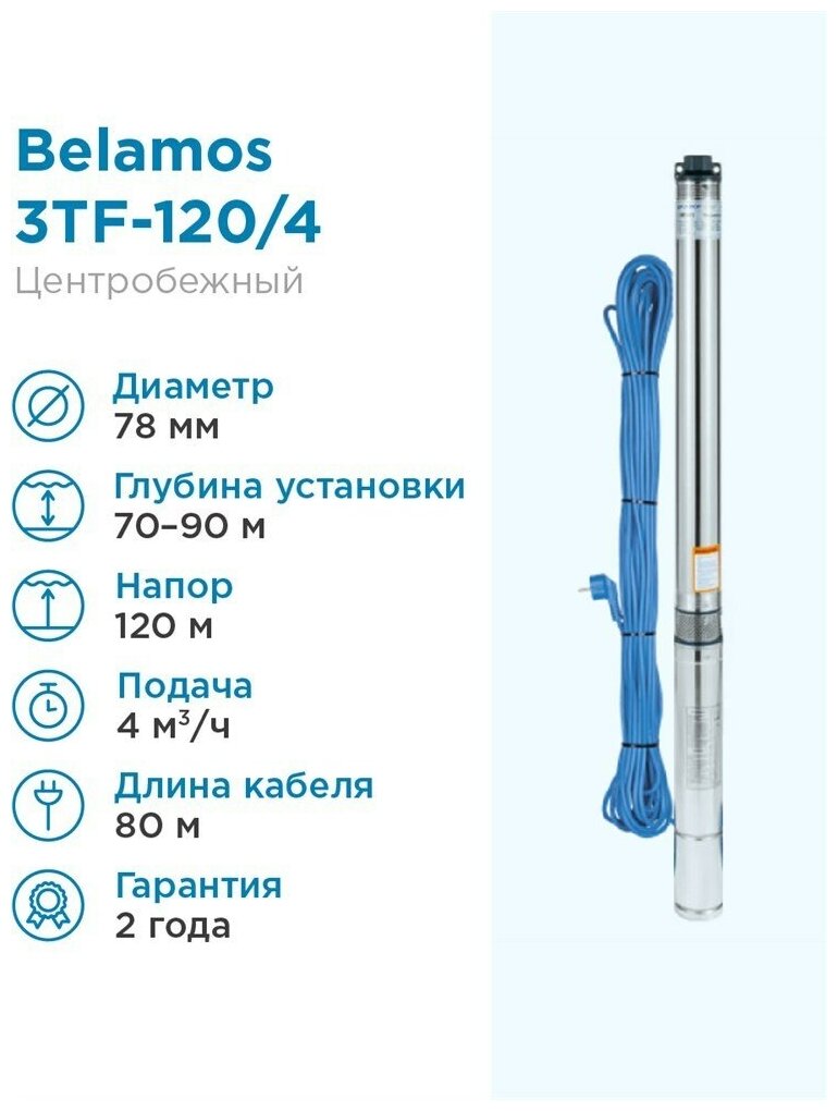 Скважинный насос BELAMOS 3TF-120/4 каб. 80м. интересное: