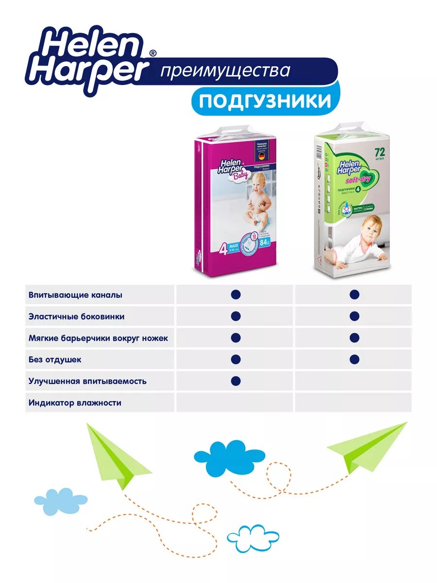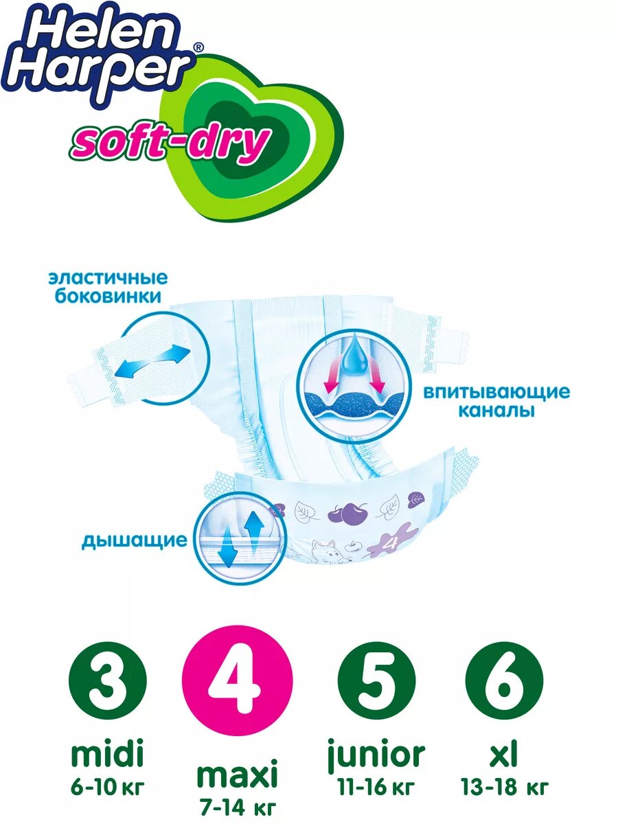Подгузники Helen Harper Soft&Dry Maxi 4, 7-18кг (9-14кг), 72шт.