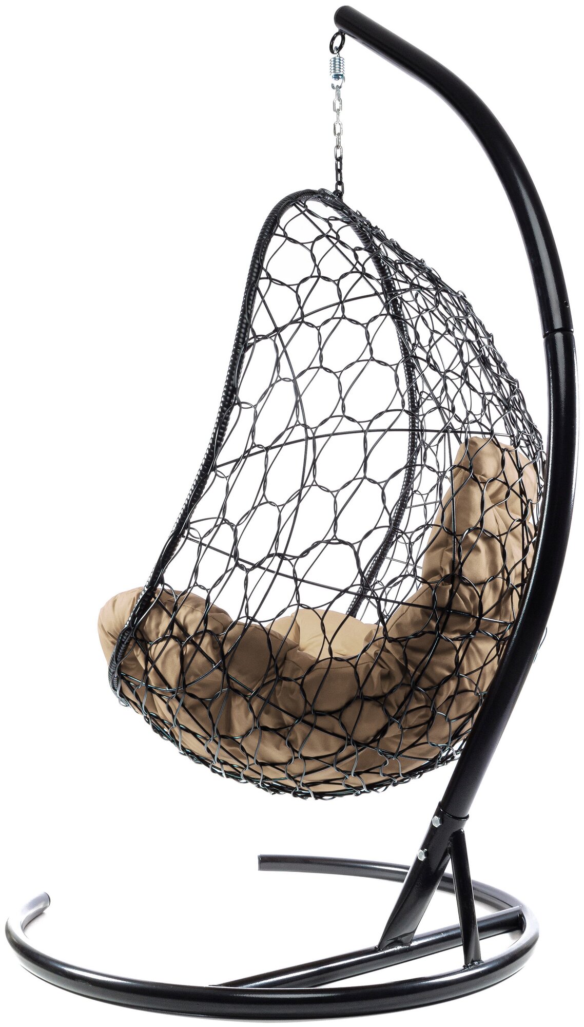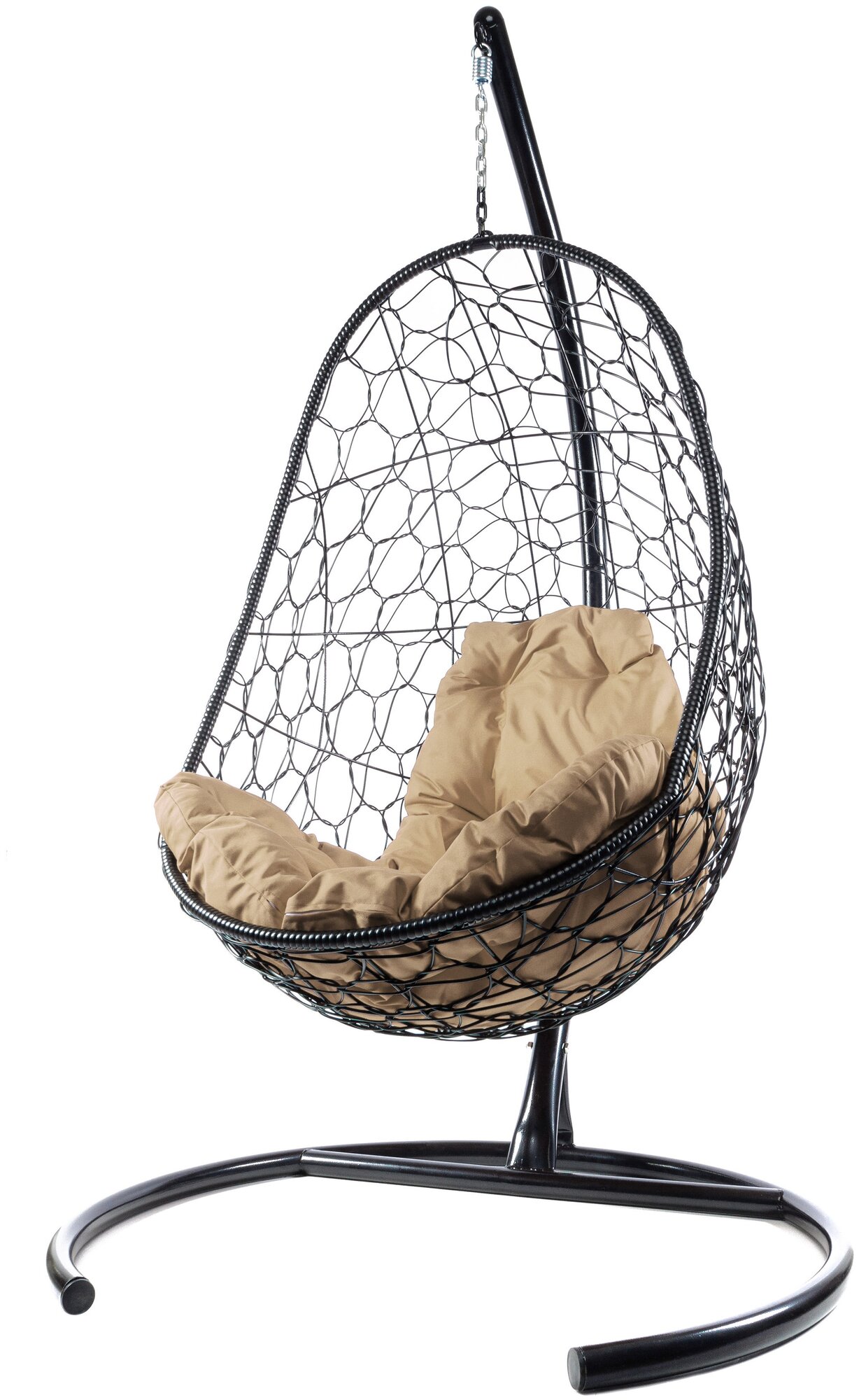 Подвесное кресло овал с ротангом чёрное, бежевая подушка