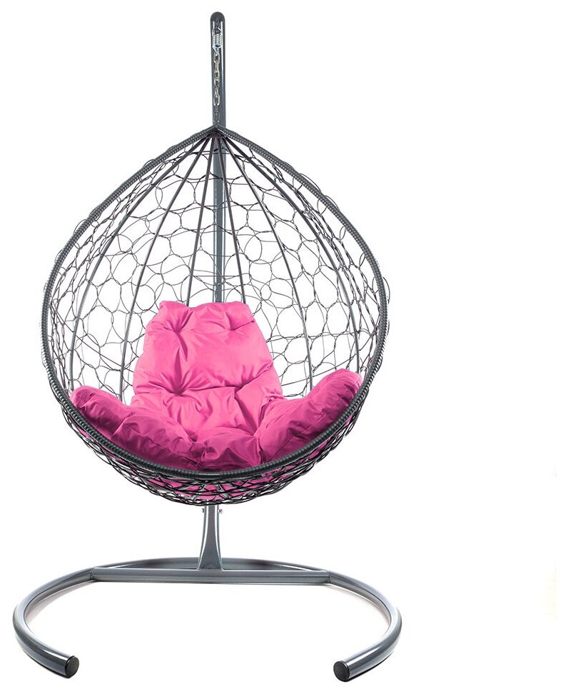Купить Подвесное кресло M-Group капля ротанг серое, розовая подушка