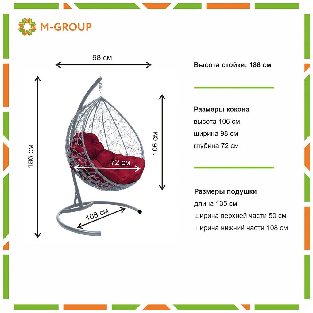 Купить Подвесное кресло M-Group капля ротанг серое, бордовая подушка