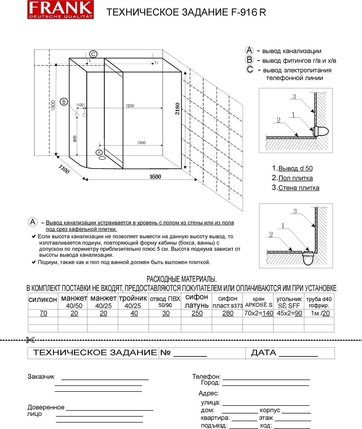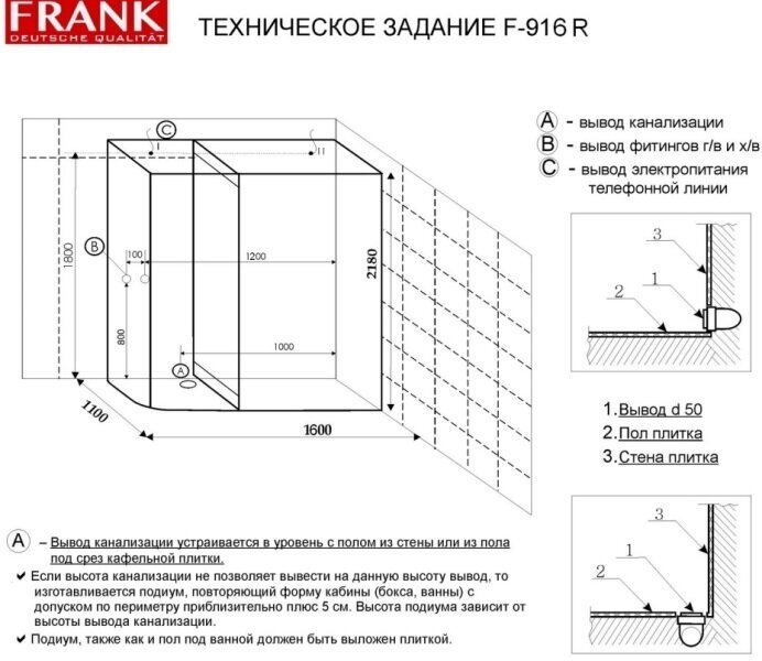 Душевая кабина Frank F-916 R 160x110