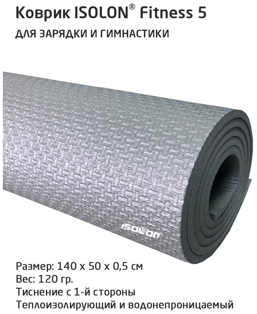 Купить Коврик для фитнеса и гимнастики Isolon Fitness 5 мм, серебристый