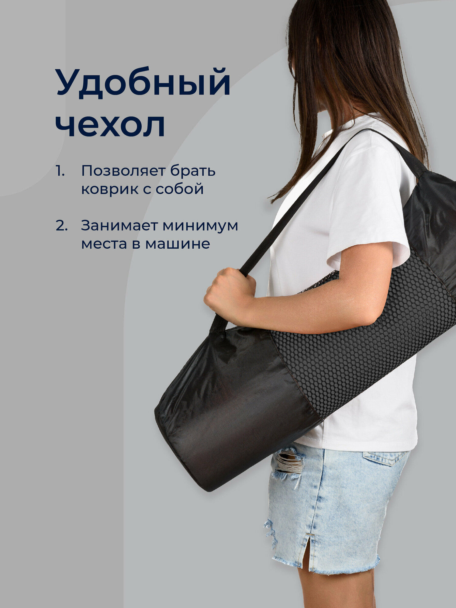 | Плюсы: | Руки, ноги не скользят на нём. Мягкий, приятный на ощупь. Возвращает свою форму. Метки на ковре действительно удобны. В комплекте чехол и лямки для переноски. |
