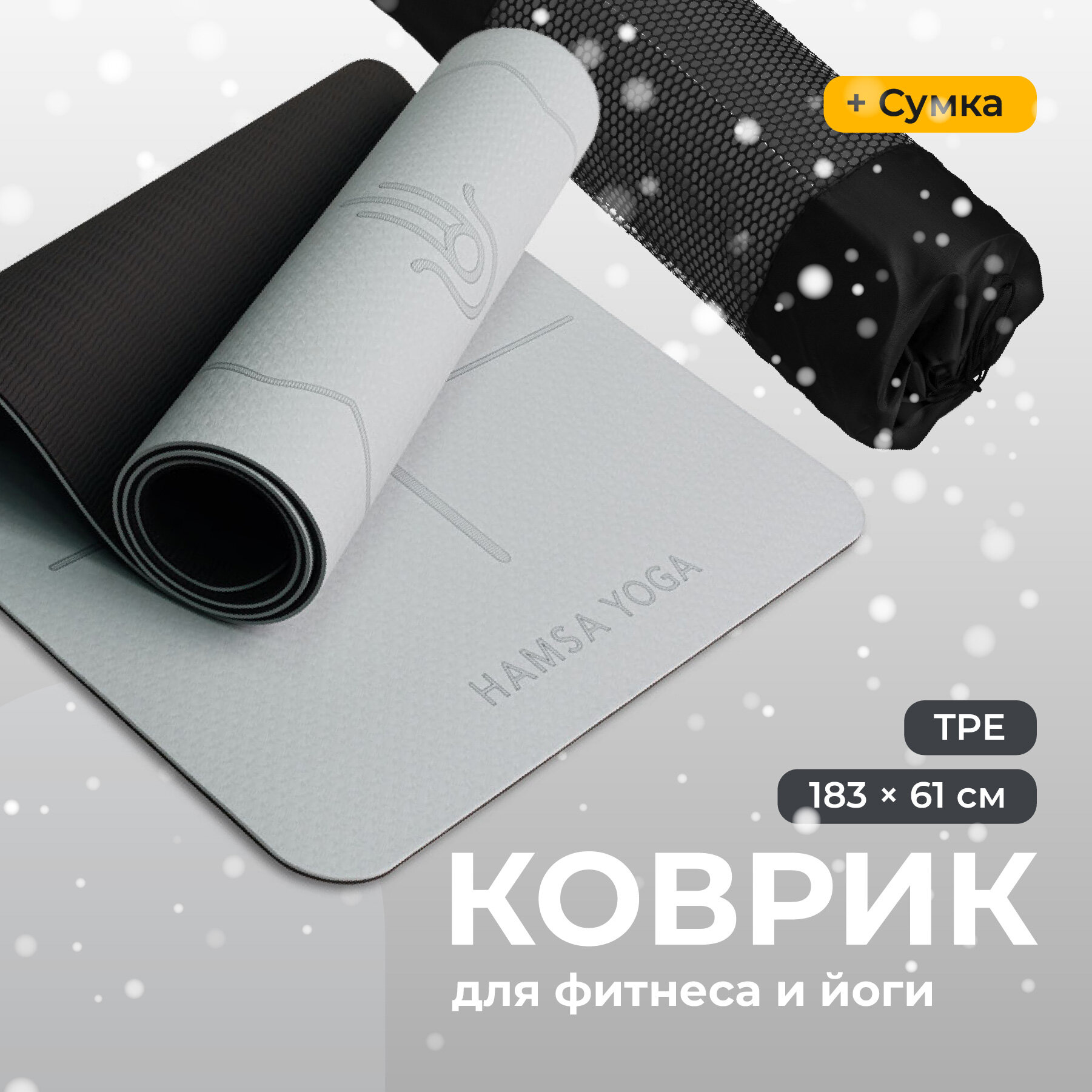 Спортивный тренировочный коврик, Hamsa Yoga, Для йоги и фитнеса с покрытием TPE, Спортивный инвентарь для фитнеса, Размер 183х61х0.6 см