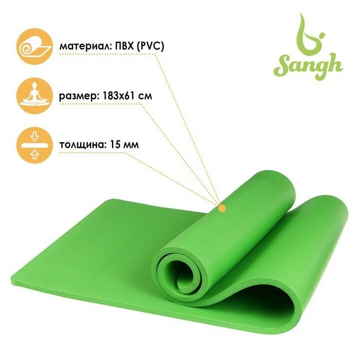 Купить Коврик Sangh, для йоги, размер 183 х 61 х 1,5 см, цвет зелёный
