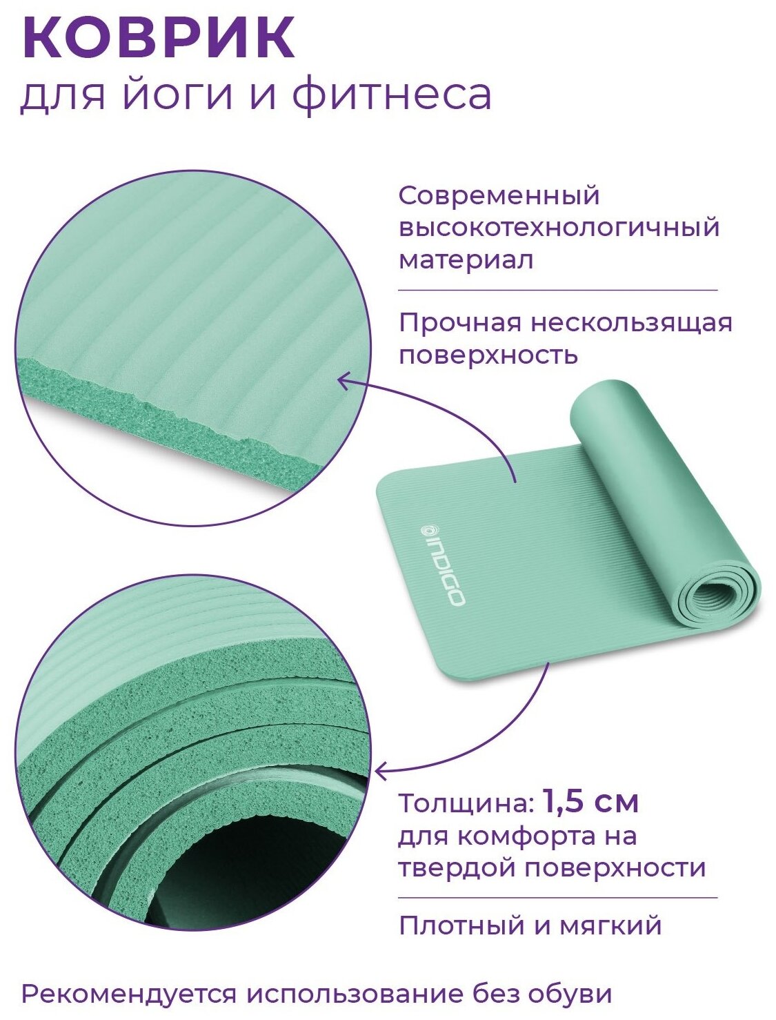 Коврик для йоги и фитнеса INDIGO NBR IN194 Бирюзовый 173*61*1,5 см