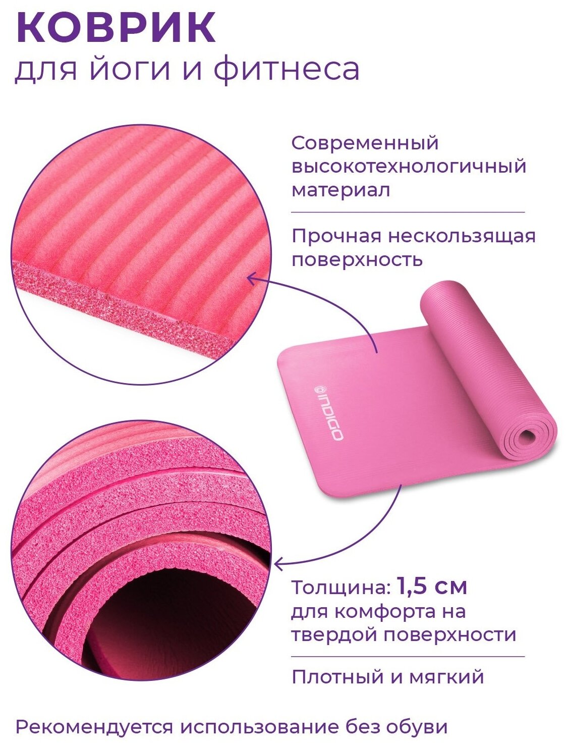 Купить Коврик для йоги и фитнеса INDIGO NBR IN194 Цикламеновый 173*61*1,5 см