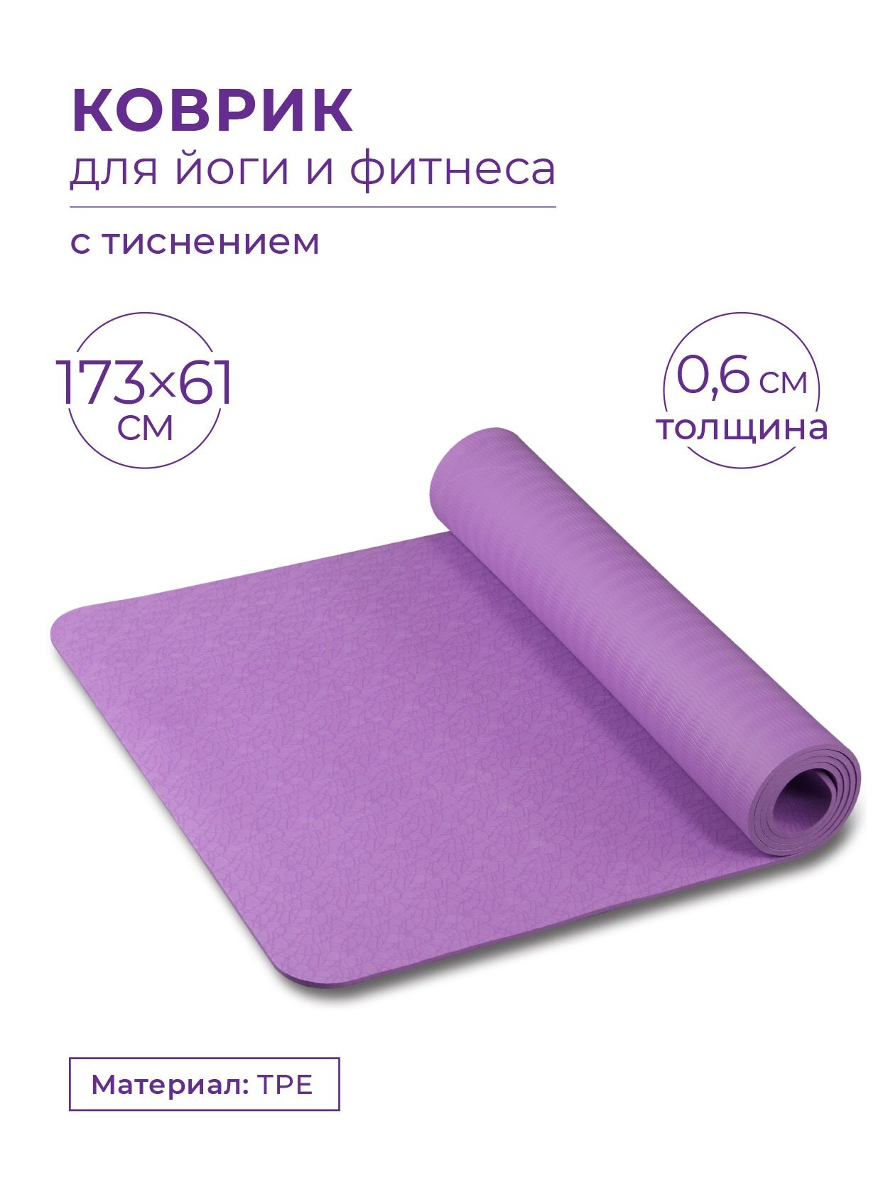 IN020 Коврик для йоги и фитнеса INDIGO TPE с тиснением Фиолетовый 173*61*0,6 см интересное: