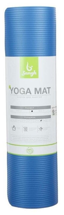 Коврик для йоги Sangh нескользящий, размер 183х61 см, толщина 1 см, материал NBR, цвет синий