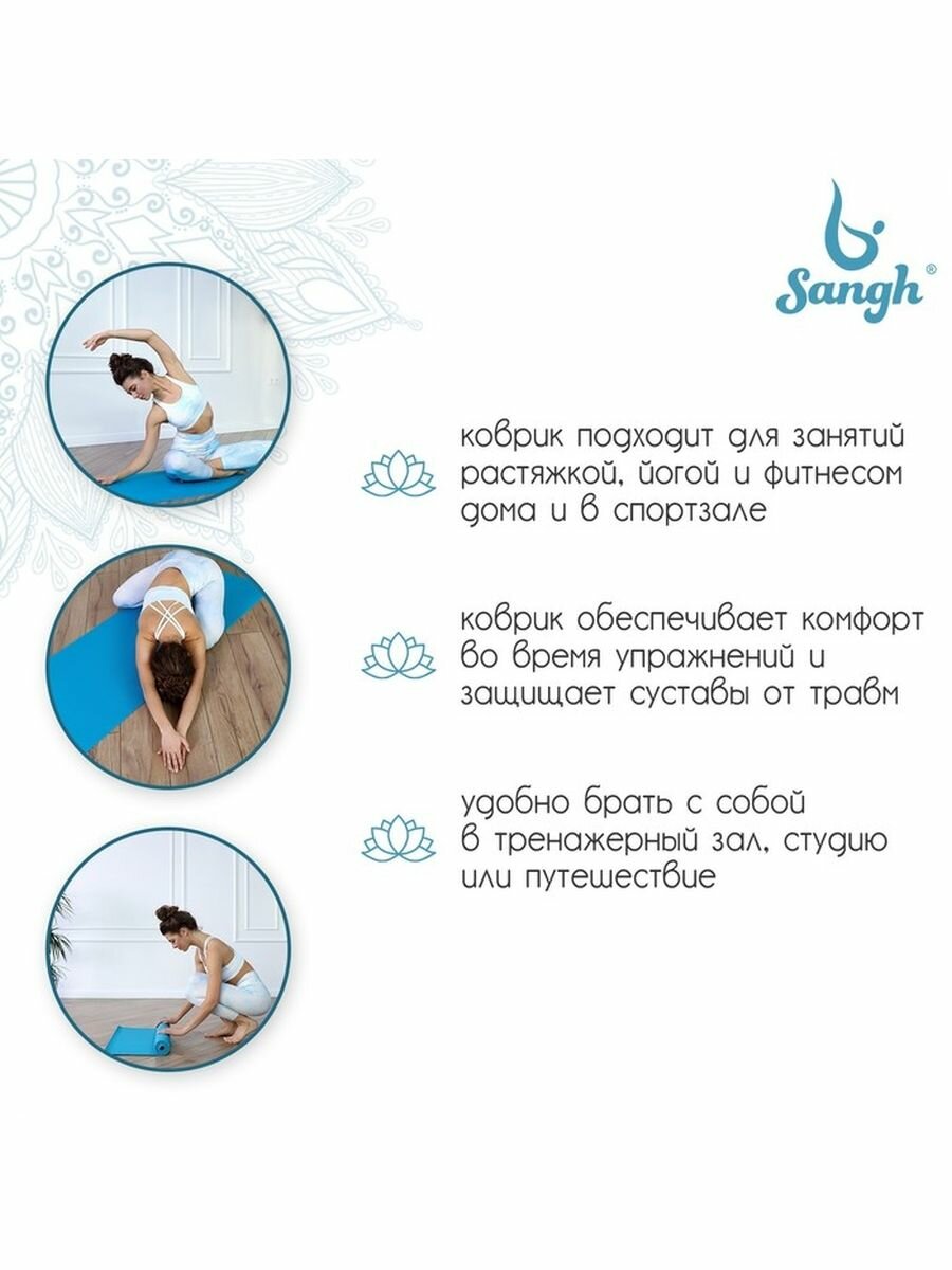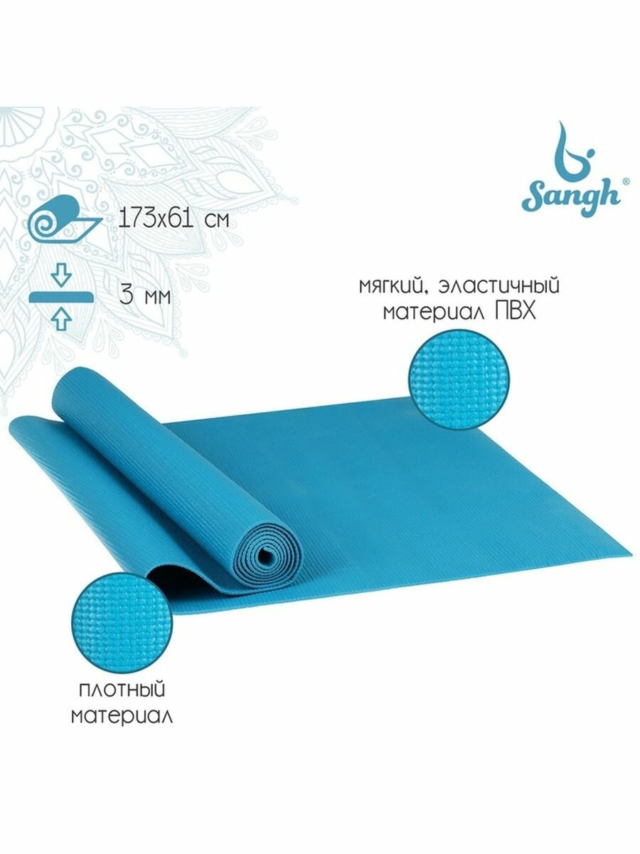 Sangh Коврик для йоги 173 х 61 х 0,3 см, цвет синий