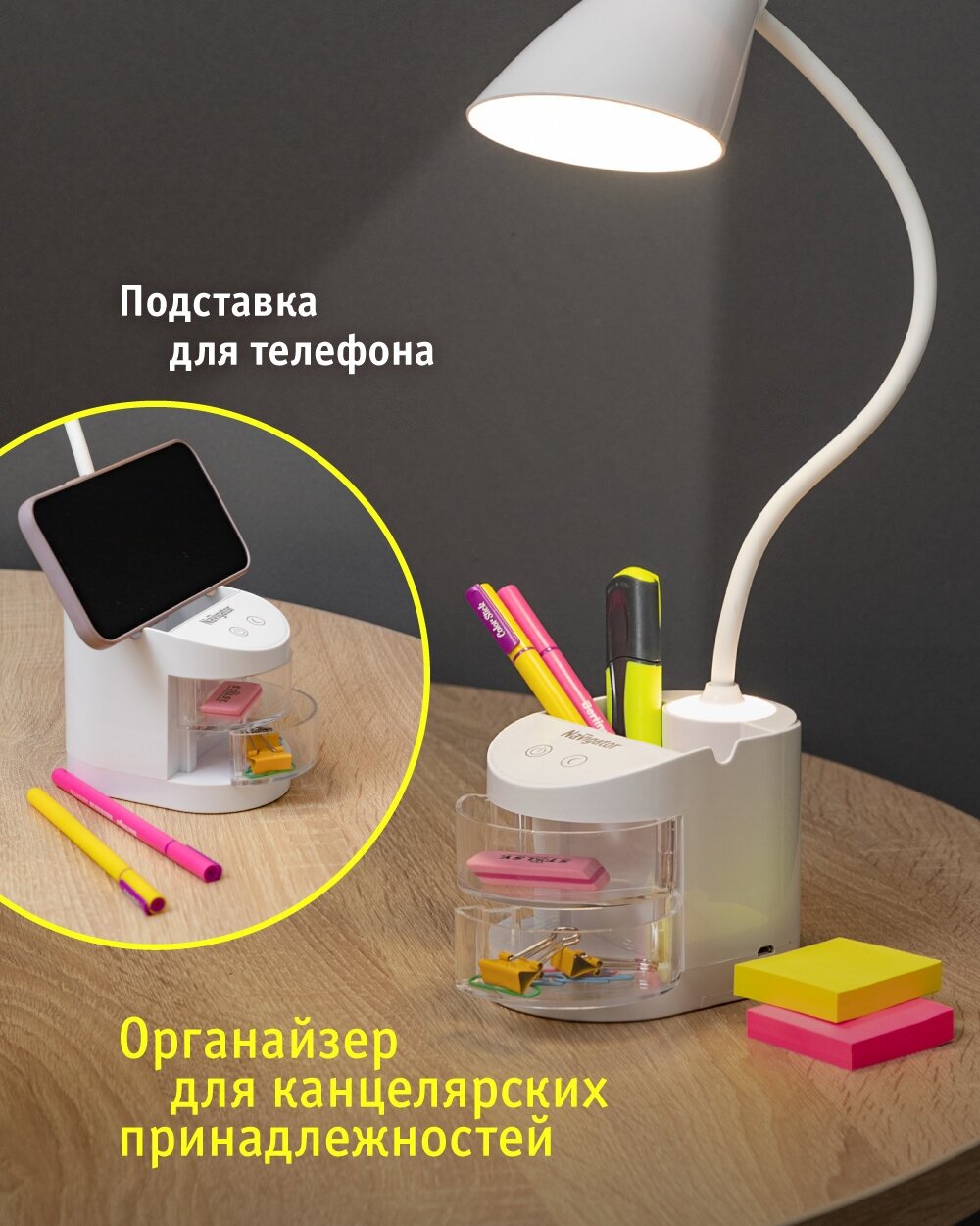 Светильник светодиодный настольный 93 159 NDF-D036-5W-4K-WH-LED 5Вт 4000К 240лм сенсор USB с подставкой для канц. на основании бел. Navigator 93159