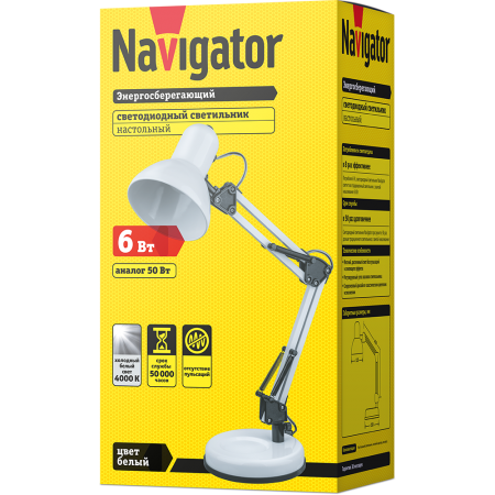 Настольный светодиодный светильник Navigator 61 549 NDF-D023-6W-4K-WH-LED на основании, белый