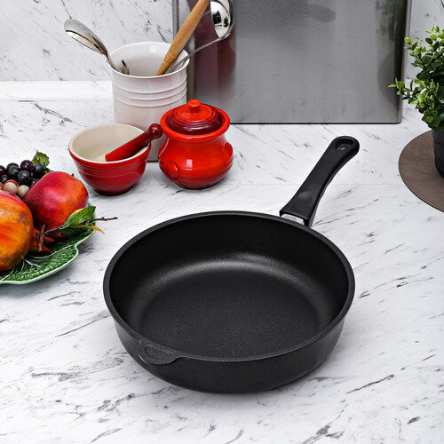 Сковорода глубокая 28 см с антипригарным покрытием высота 7 см, фиксированная ручка, AMT Gastroguss, AMT728FIX