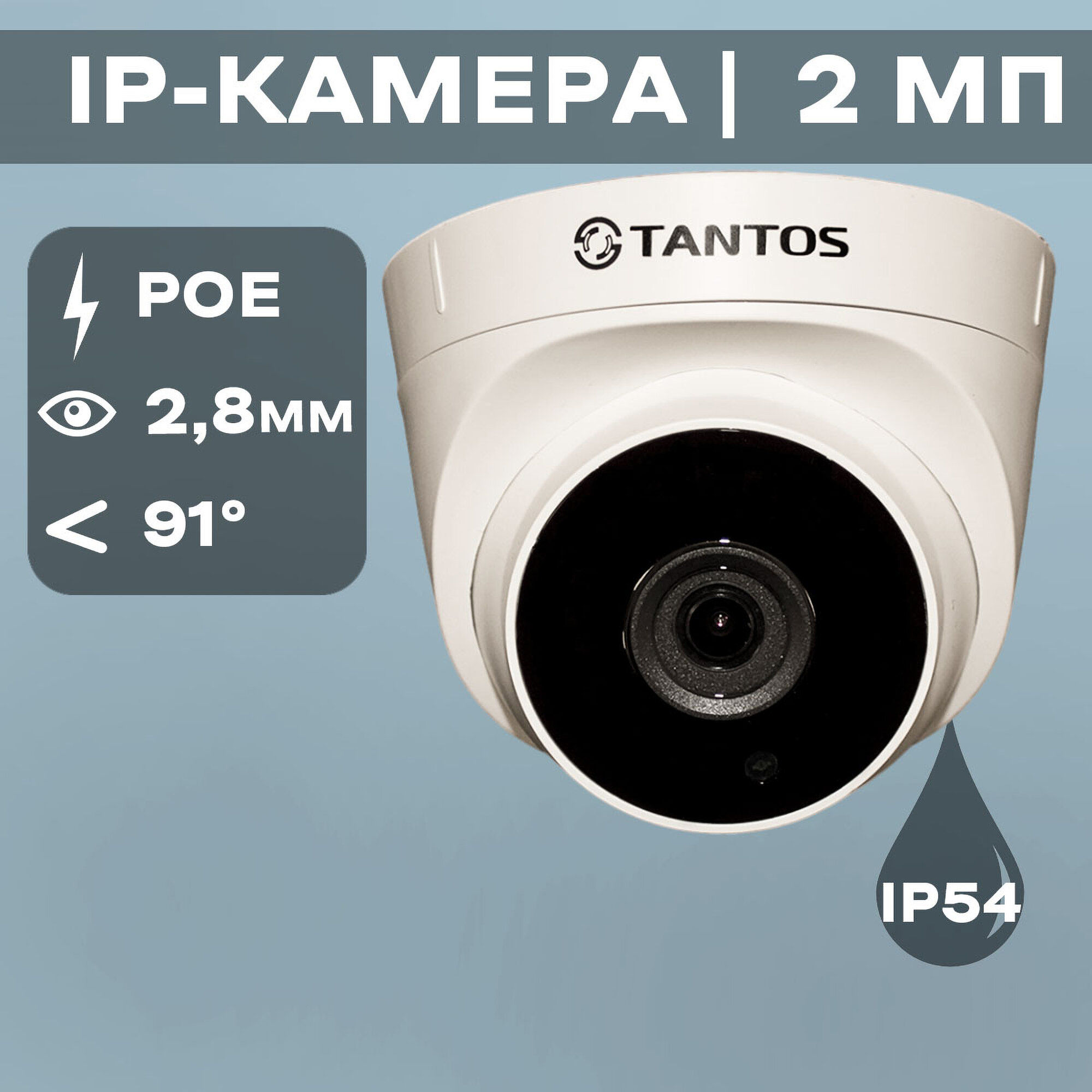 Купольная видеокамера сетевая+Tantos+TSi-Eeco25FP Цвет корпуса белый, Двухмегапиксельная 1920х1080х30к/с