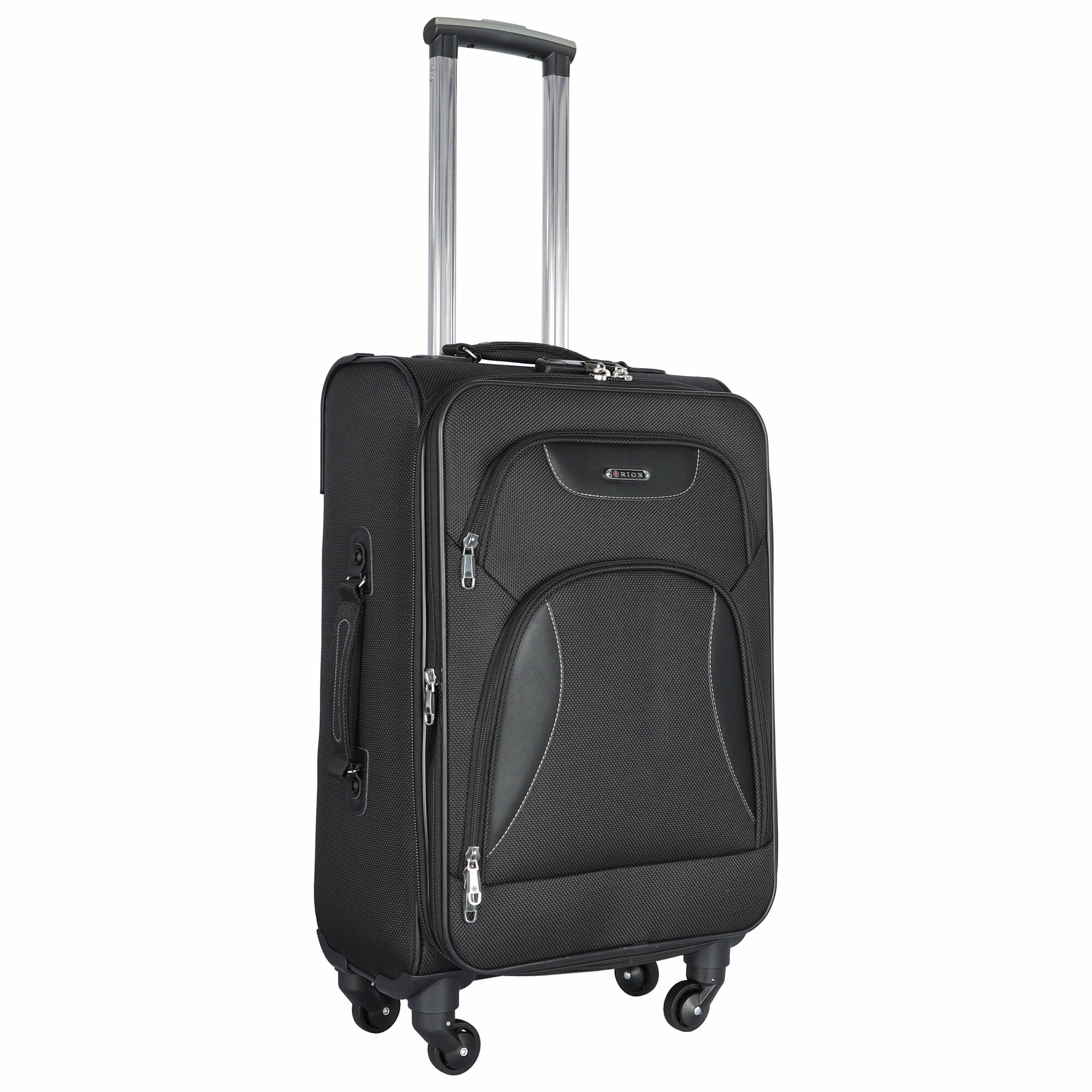 Купить Чемодан Рион+ (RION+) R427-4, Ткань, 66 см, 52 литра, 4 колеса, M (56-70 см), трансформер +15 литров, усиленный до 25кг, черный