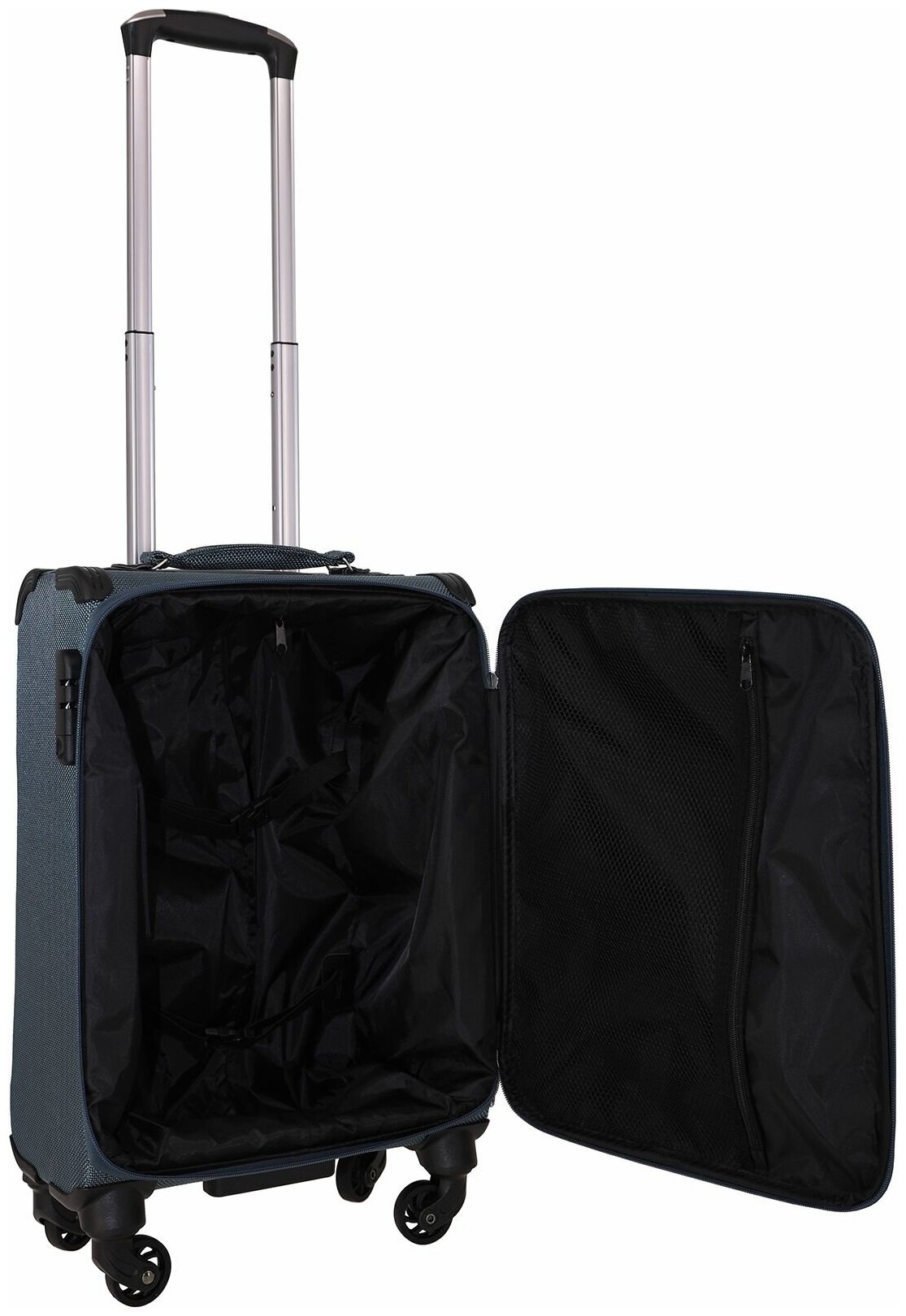 Чемодан Рион+ (RION+) R454, Ткань, 55 см, 38 литра, 4 колеса, S (до 55 см), ручная кладь, супер-легкий, 2,4кг, синий